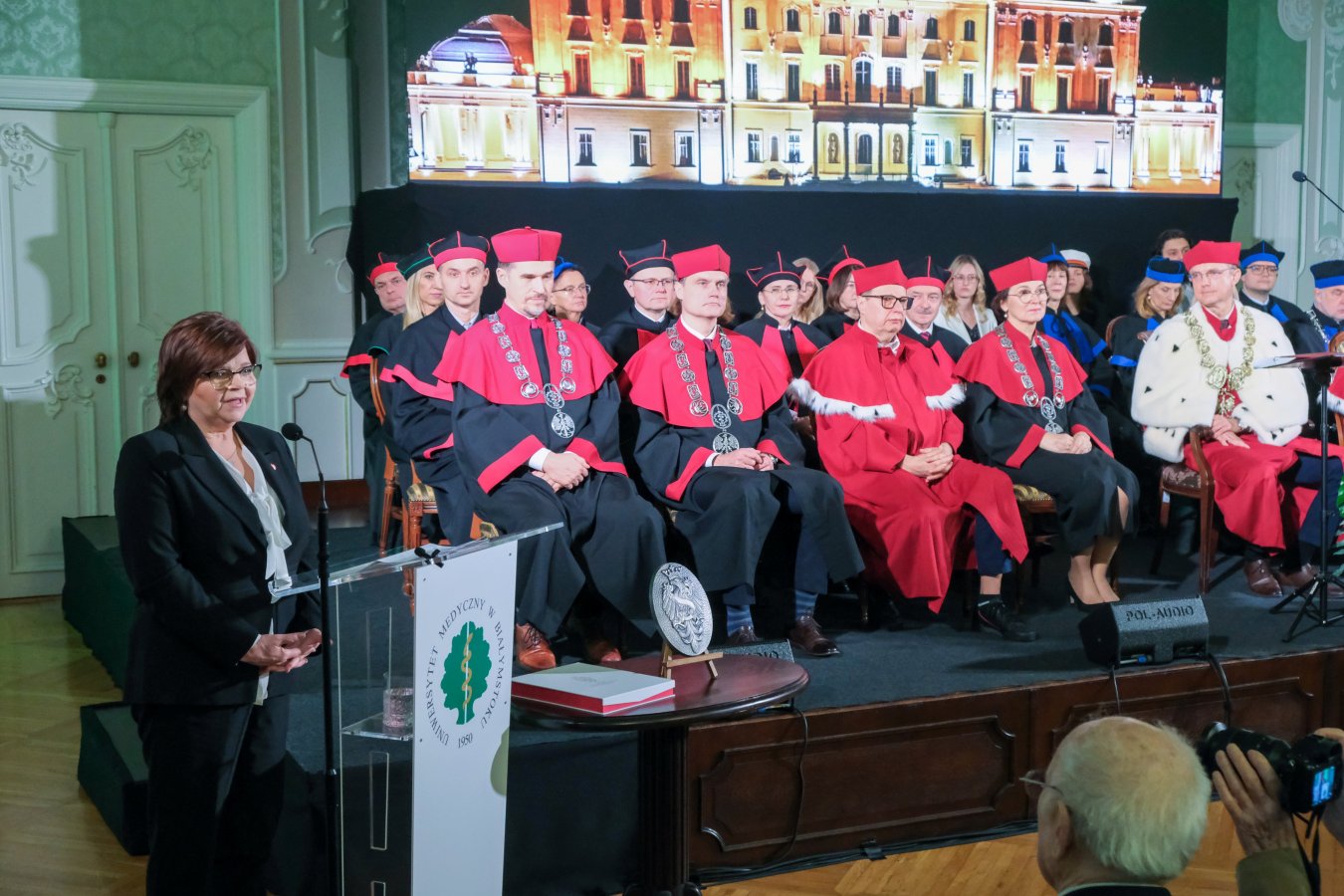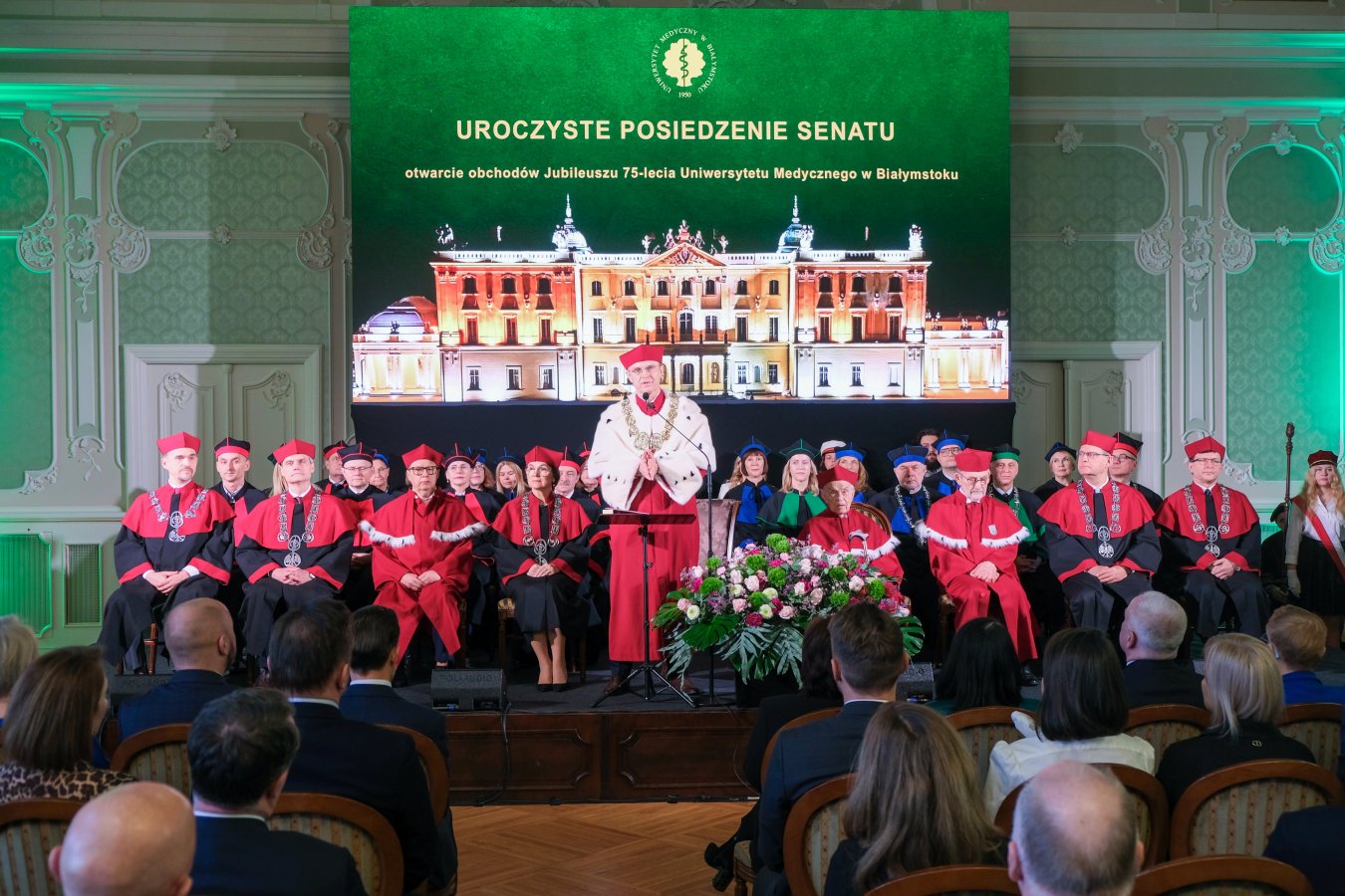 Data uroczystości była nieprzypadkowa – to właśnie 3 lutego 1950 roku rada ministrów zdecydowała o utworzeniu Akademii Lekarskiej w Białymstoku, przemianowanej wkrótce na Akademię Medyczną, pierwszą tego typu uczelnię w Polsce północno-wschodniej. Jej siedzibą został zniszczony w osiemdziesięciu procentach Pałac Branickich – pieczołowicie przez lata przez uczelnię odbudowywany i przywracany do dawnej świetności. To niezwykłe miejsce, perła baroku ma bogatą historię medyczną poczynając od XVIII wieku, gdy część apartamentów zajmowała Pałacowa Szkoła Położnych i nadworni medycy Branickich. Historia tego miejsca doskonale wpisuje się w misję Uniwersytetu Medycznego, łącząc tradycję z nowoczesnością.