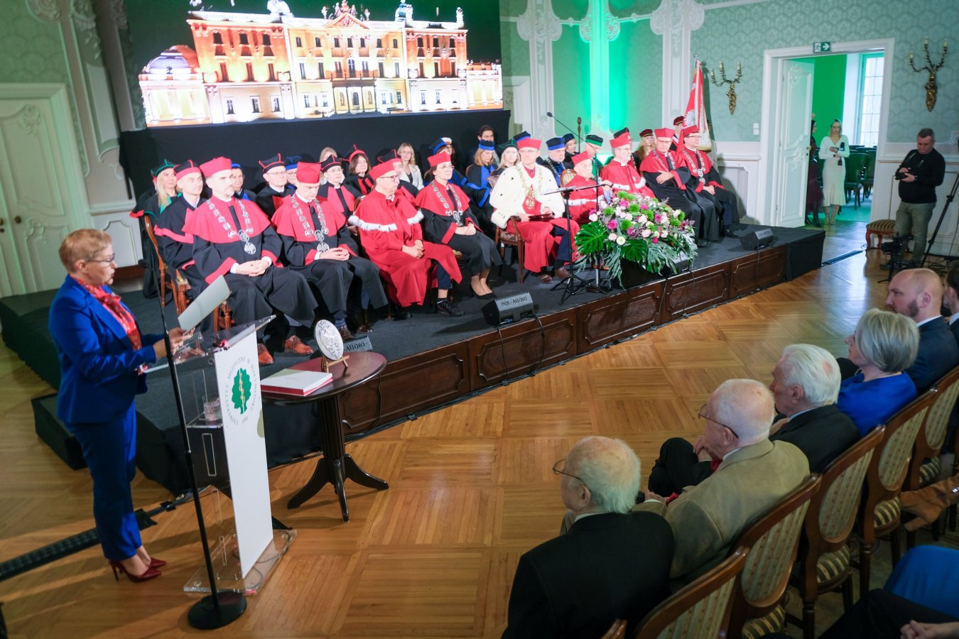 Minister Zdrowia Izabela Leszczyna odniosła się do słów przemówienia rektora oraz do wcześniej przygotowanych filmów dotyczących historii, teraźniejszości i przyszłości UMB.