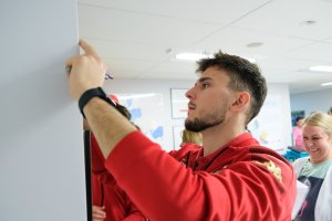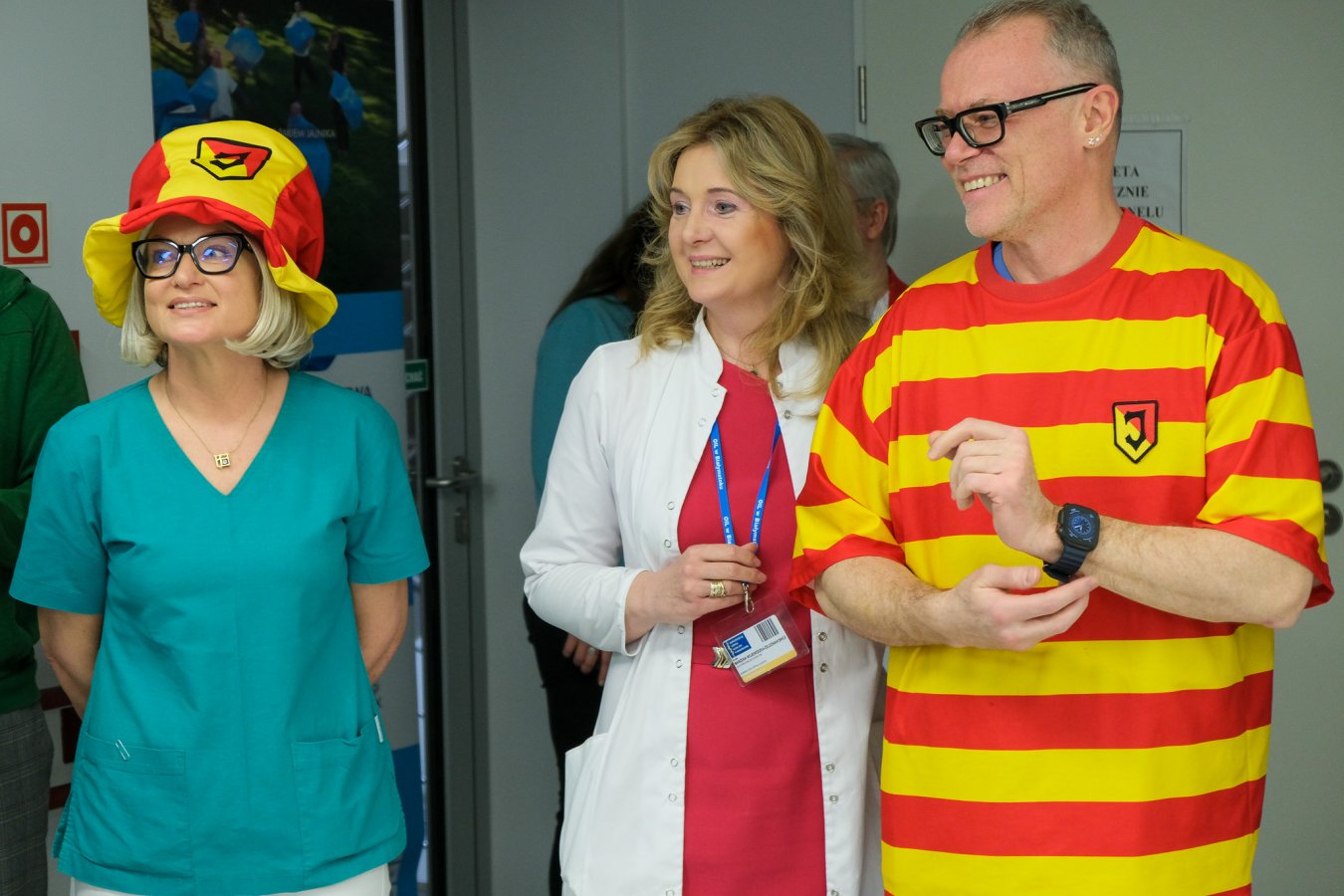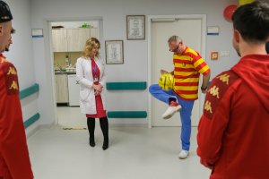 Cała wizyta miała bardzo radosny przebieg. Oddział został udekorowany żółto-czerwonymi balonami, ekipa UCO miała na sobie jagiellońskie barwy. Choć początkowo pacjentki były bardziej stremowane od piłkarzy (ci mieli dla nich tulipany i vouchery na dowolny mecz Jagiellonii), to po chwili okazało się, że Panie doskonale były zorientowane, kto ich odwiedził i jakie wyniki osiąga ostatnio Jaga. Mogły zebrać autografy od piłkarzy, chwilę porozmawiać z piłkarzami. Nawet udało się pograć na korytarzu w piłkę.