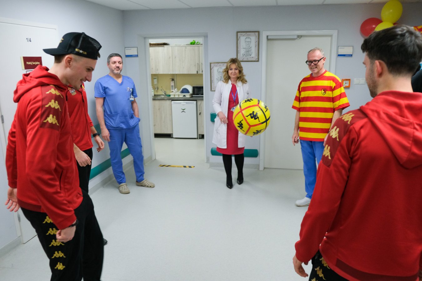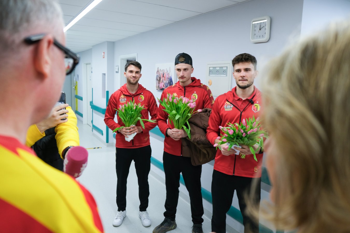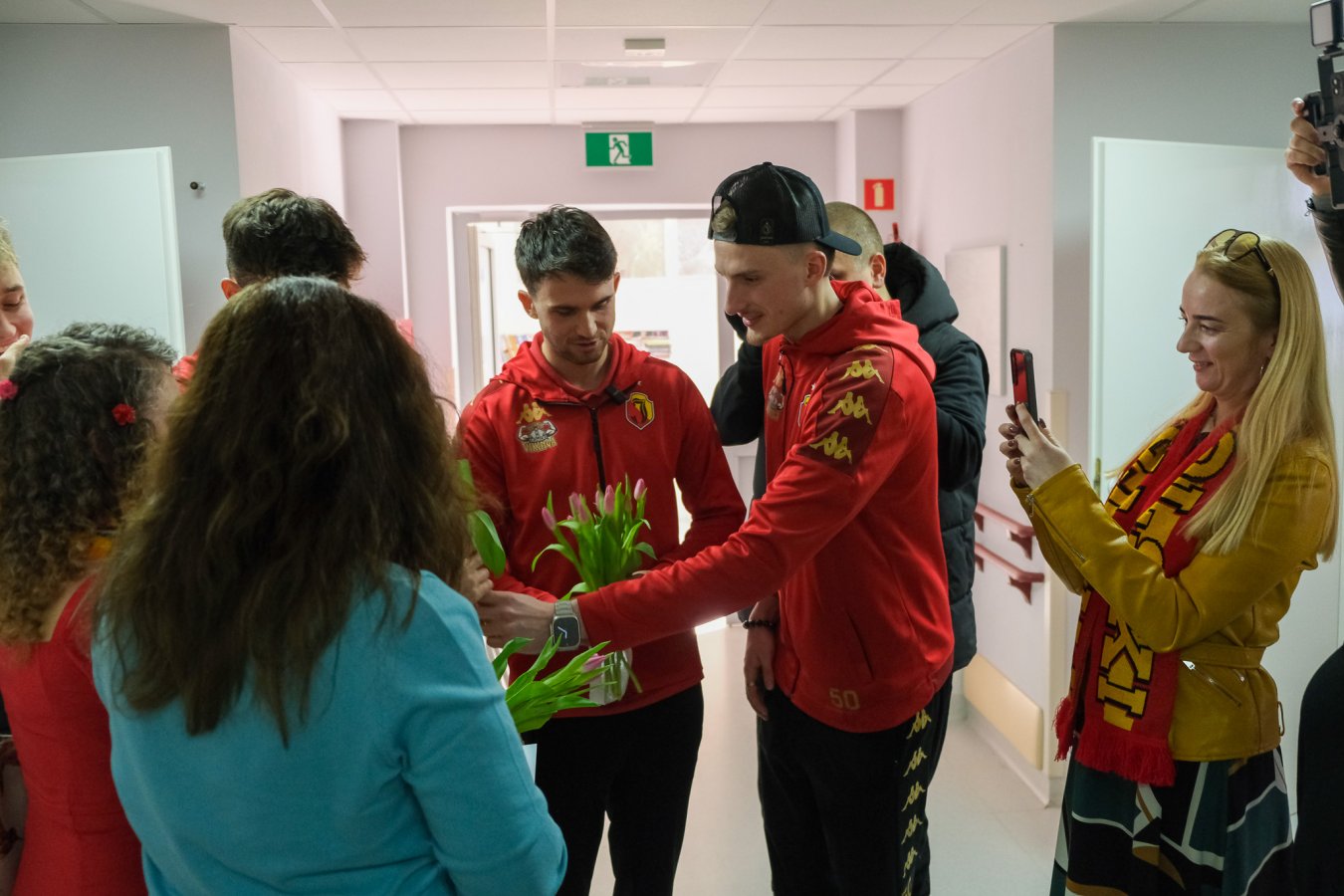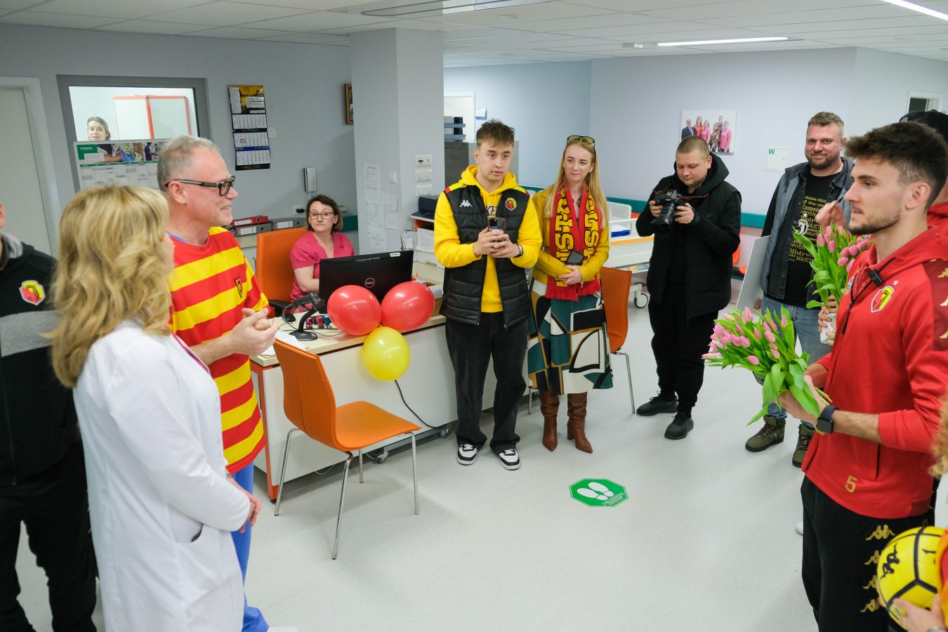 Piłkarze w sobotę (8 marca 2025 r.) przyjść nie mogli, ponieważ w niedzielę grali mecz z Widzewem w Łodzi (wygrali 1:0). Za to już w poniedziałek, w samo południe, wystawili bardzo mocny skład, oparty na zawodnikach pierwszej drużyny: bramkarz Sławomir Abramowicz, obrońca Cezary Polak i defensywny pomocnik Leon Flach i pojawili sięw Uniwersyteckim Szpitalu Klinicznym w Białymstoku.