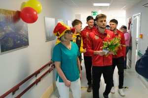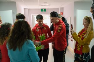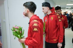Piłkarze Jagiellonii Białystok z kwiatami i upominkami odwiedzili w poniedziałek pacjentki leczące się w Uniwersyteckim Centrum Onkologii w Białymstoku. Pretekstem był Dzień Kobiet.