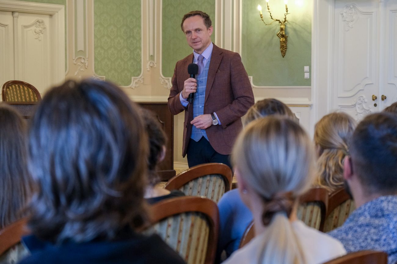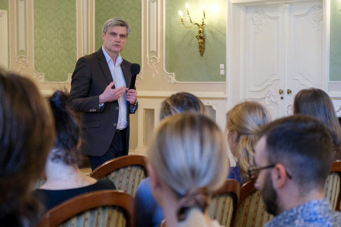 Wydarzenie rozpoczęło się od serdecznych podziękowań Rektora skierowanych do studentów działających w przeróżnych organizacjach wewnątrz Uczelni,. Zdaniem prof. Moniuszko, to właśnie ta działalność stanowi o wyjątkowości UMB, dlatego tak bardzo zależy mu na bezpośrednim kontakcie i możliwości rozmowy ze studentami.