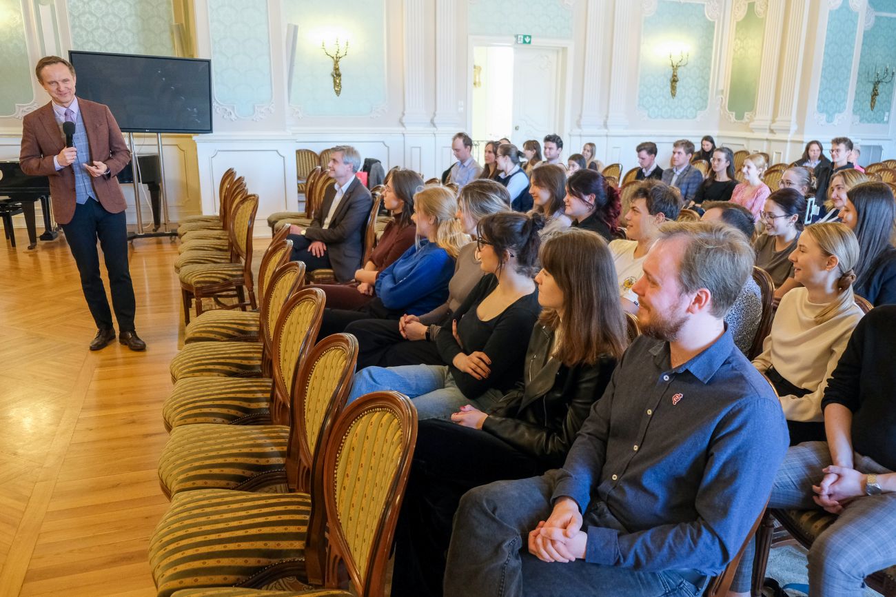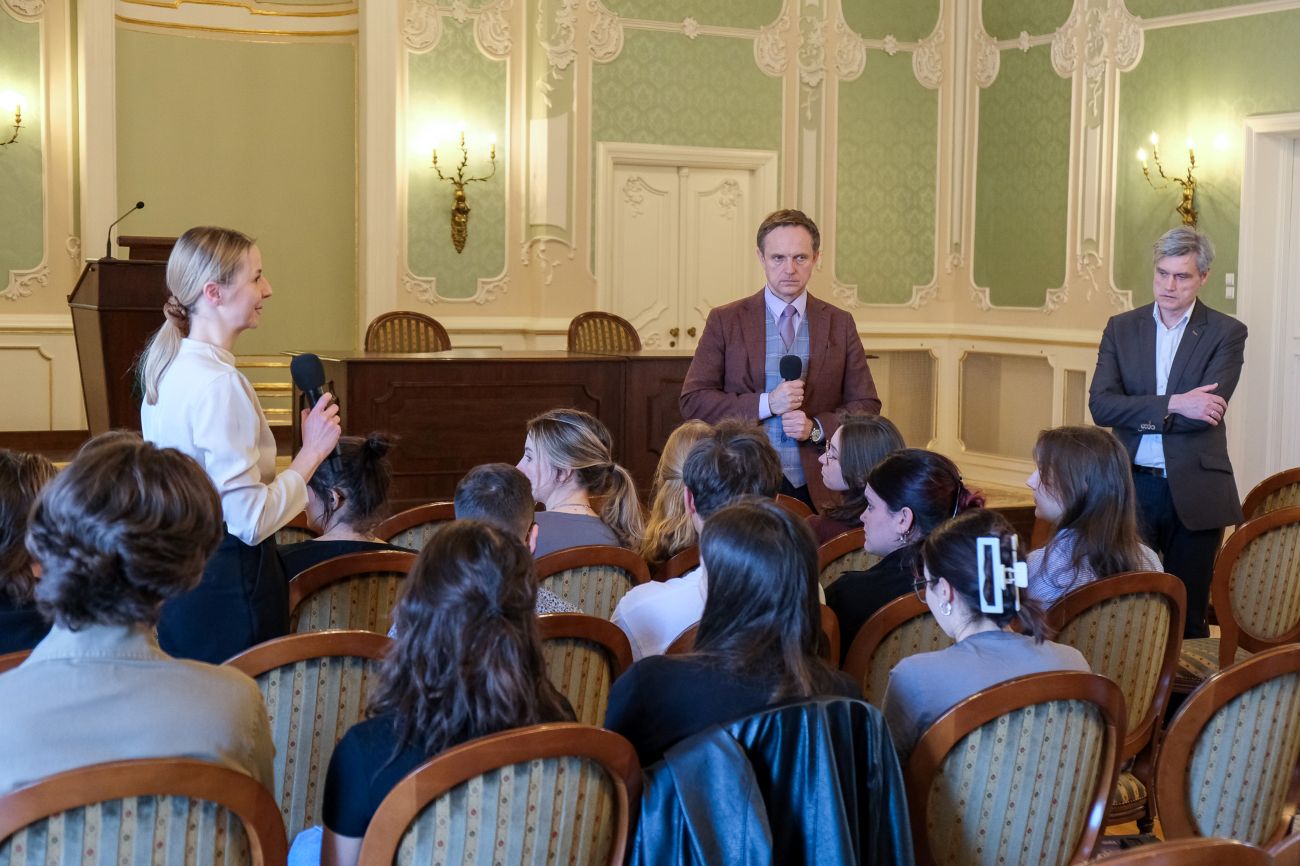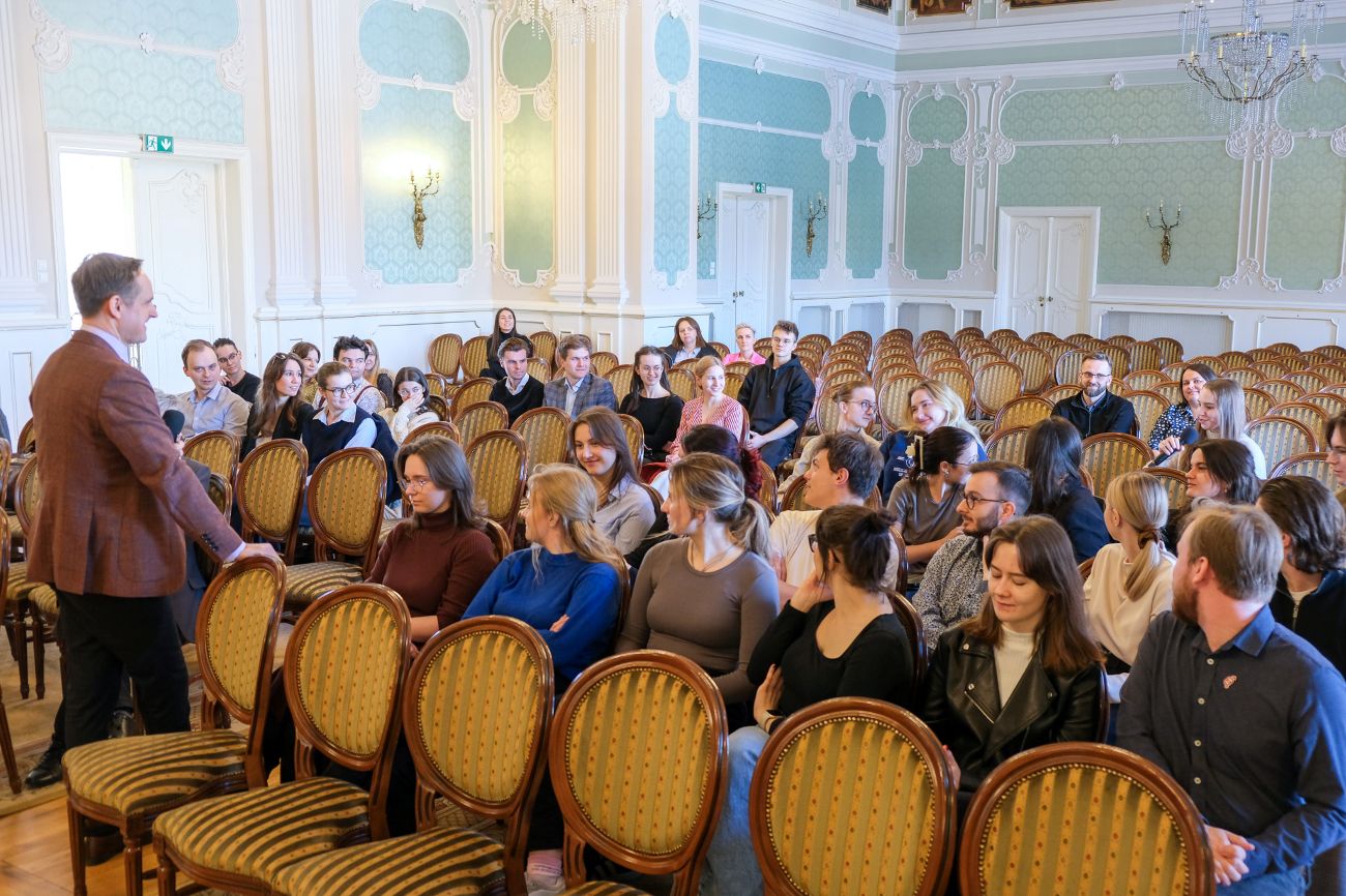 W środę (2 kwietnia 2025r.) w Aula Magna Pałacu Branickich odbyło się spotkanie władz Uczelni (obecny był Rektor prof. Marcin Moniuszko oraz Prorektor ds. kształcenia prof. Adrian Chabowski) z przedstawicielami organizacji studenckich działających na terenie UMB.