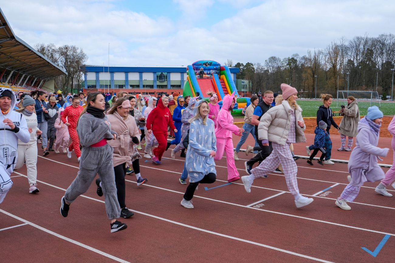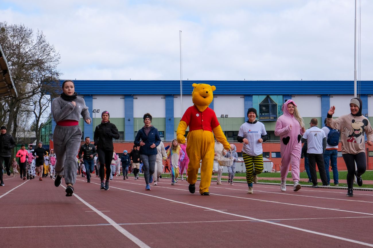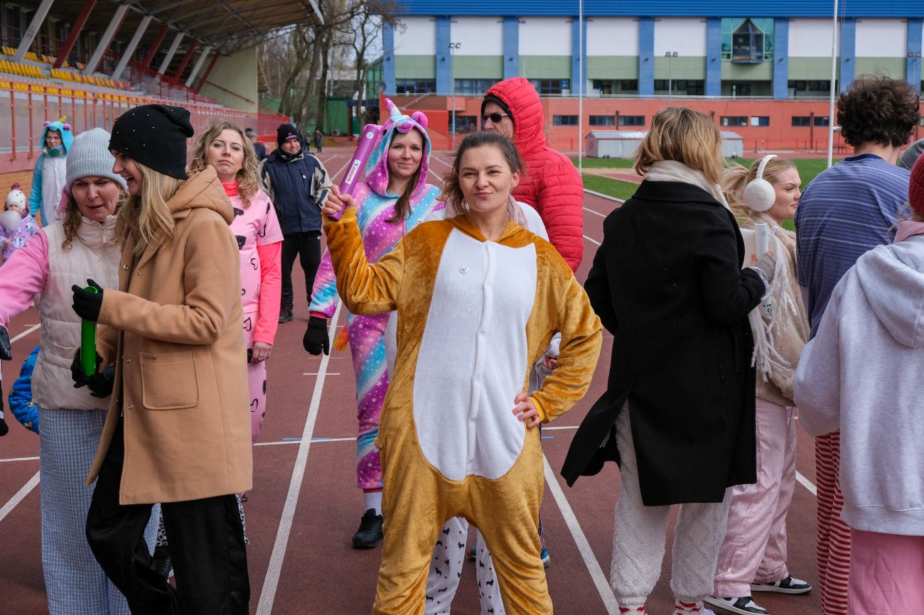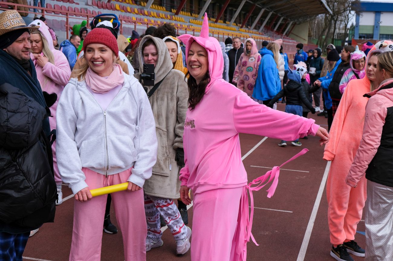 Niedzielne południe, stadion lekkoatletyczny w Białymstoku i mnóstwo ludzi w kolorowych piżamach, szlafrokach i różnych przebraniach na bieżni – to niecodzienny widok. Do tego – w pomieszczeniach treningowych pod trybuną stadionu – kilka stoisk ze smakołykami, watą cukrową, różnymi gadżetami i balonami. A pomiędzy tym wszystkim krzątał się nawet mistrz olimpijski Wojciech Nowicki. Biegano grupowo i w sztafetach. Nikt czasu nie mierzył, a wszyscy dostali złote medale. Zimno było niesamowicie, ale humory dopisywały wszystkim.