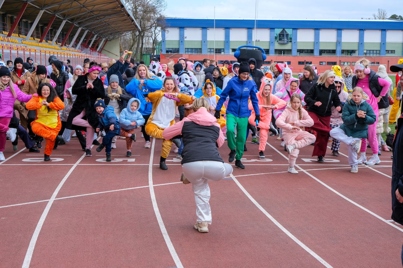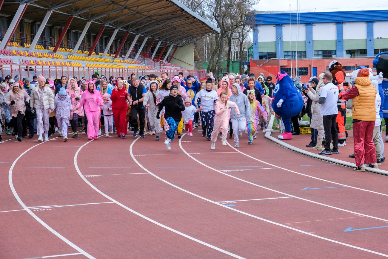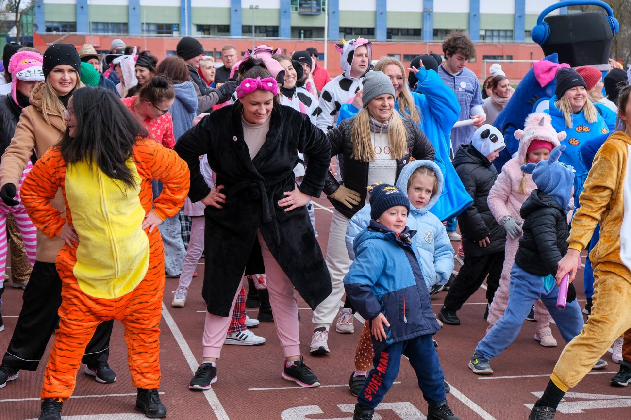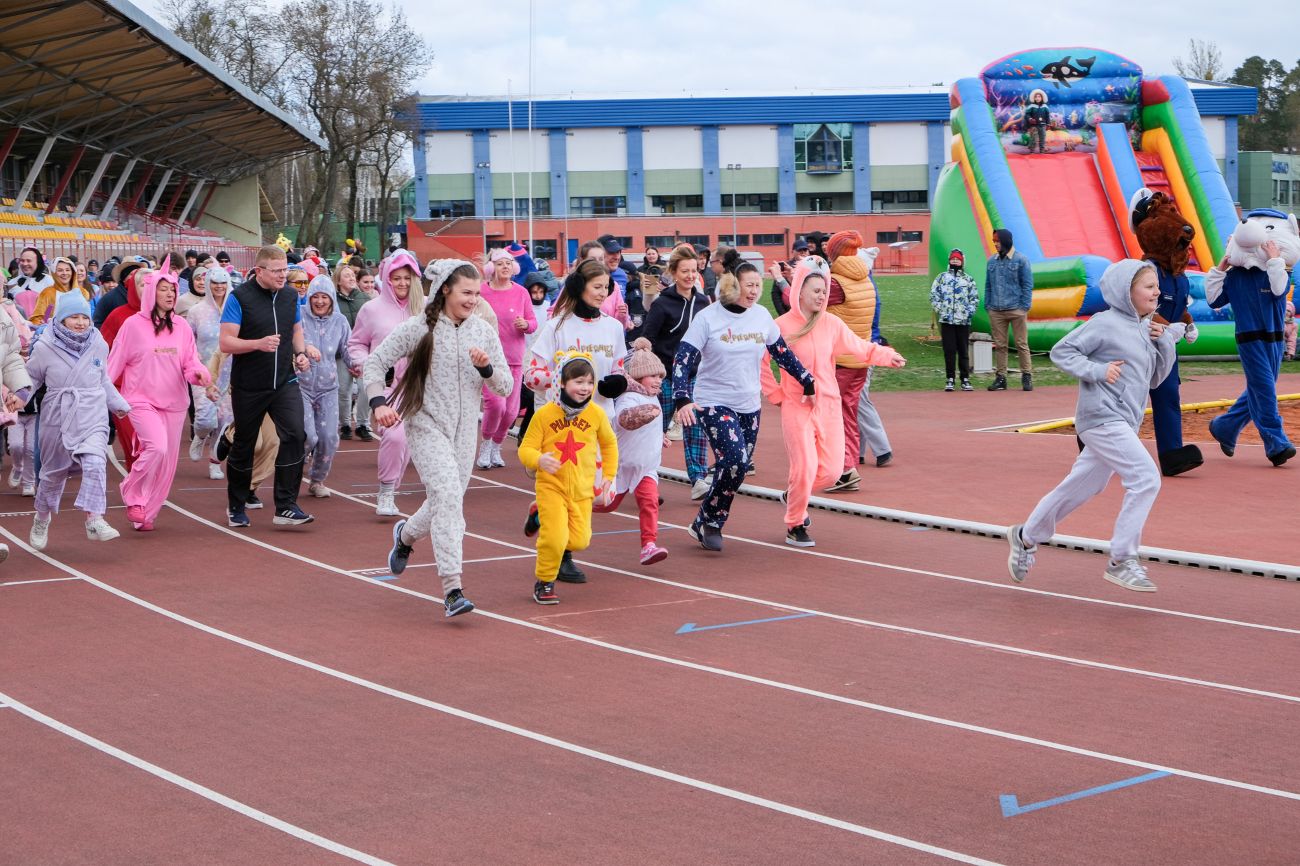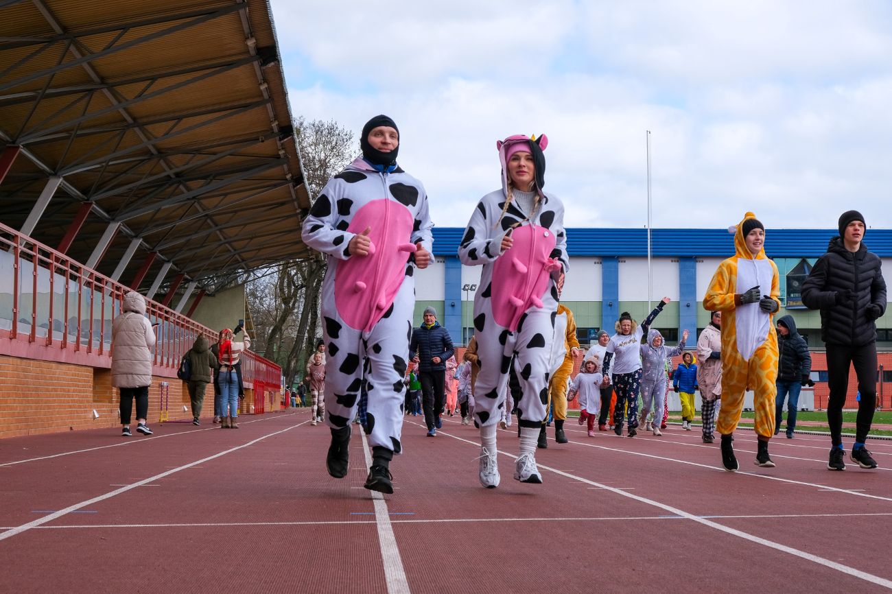 Niedzielne południe, stadion lekkoatletyczny w Białymstoku i mnóstwo ludzi w kolorowych piżamach, szlafrokach i różnych przebraniach na bieżni – to niecodzienny widok. Do tego – w pomieszczeniach treningowych pod trybuną stadionu – kilka stoisk ze smakołykami, watą cukrową, różnymi gadżetami i balonami. A pomiędzy tym wszystkim krzątał się nawet mistrz olimpijski Wojciech Nowicki. Biegano grupowo i w sztafetach. Nikt czasu nie mierzył, a wszyscy dostali złote medale. Zimno było niesamowicie, ale humory dopisywały wszystkim.