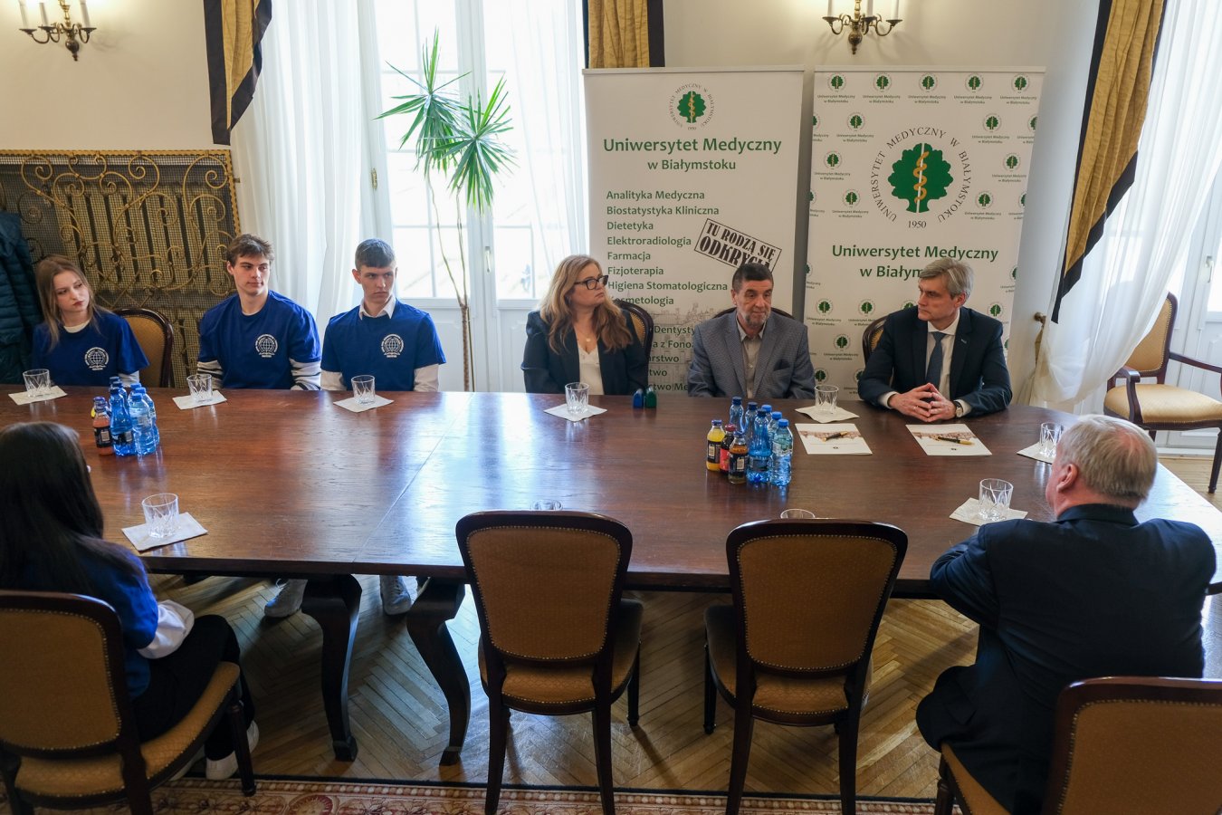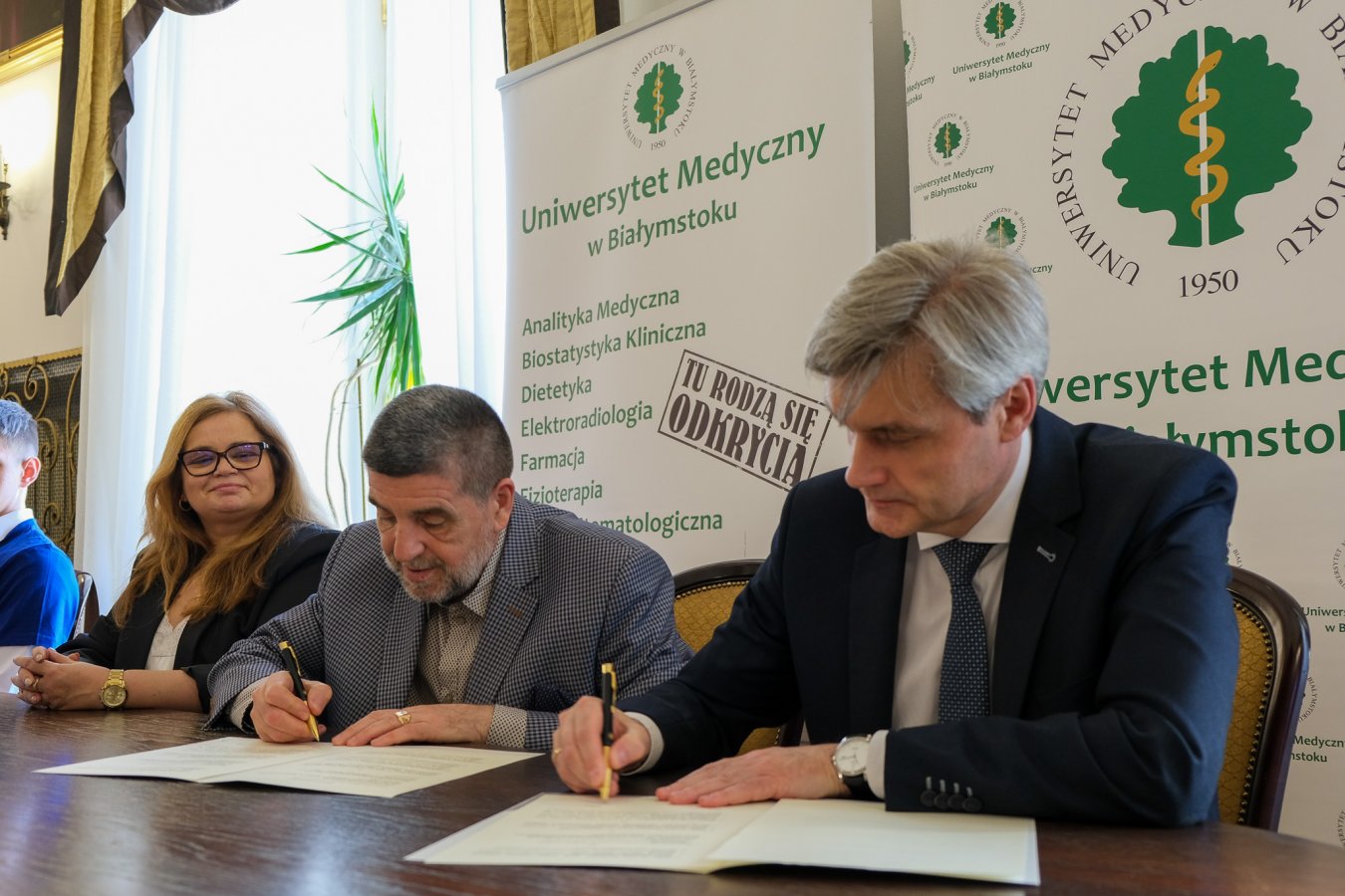 Umowę o współpracy pomiędzy placówkami podpisano we wtorek (8 kwietnia 2025r.) w Biurze Rektora UMB. Ze strony Uczelni podpisał ją prof. Adrian Chabowski, Prorektor ds. kształcenia, ze strony ZSTiO - Dyrektor dr Cezary Wysocki. W wydarzeniu uczestniczył prof. Jerzy Ładny, konsultant krajowy w dziedzinie medycyny ratunkowej oraz kierownik Kliniki Medycyny Ratunkowej UMB, a także grupa młodzieży ze szkoły.