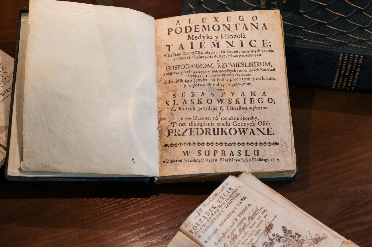 Bibliotekarka, Katarzyna Dziamecka pokazywała dziennikarzom starodruki, jakie znajdują się w zasobach Biblioteki UMB. Najstarsza księga to „Alexego Pedemontana Tayemnice”, dzieło szesnastowiecznego włoskiego fizyka i alchemika - posiadany przez bibliotekę egzemplarz wydrukowano w Supraślu w Drukarni Wielebnych Ojców Bazylianów w 1758 roku.