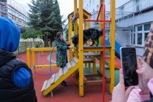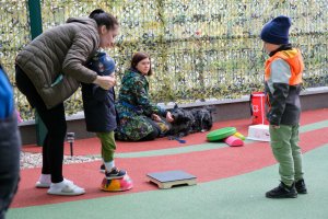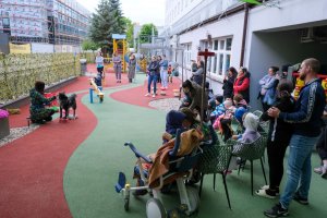 Pierwsze zajęcia odbyły się w środę (7 maja 2025r.) na placu zabaw przy klinice, na podwórku. Dlatego mogły w nich uczestniczyć tylko te maluchy, którym zdrowie pozwalało wyjść na zewnątrz.