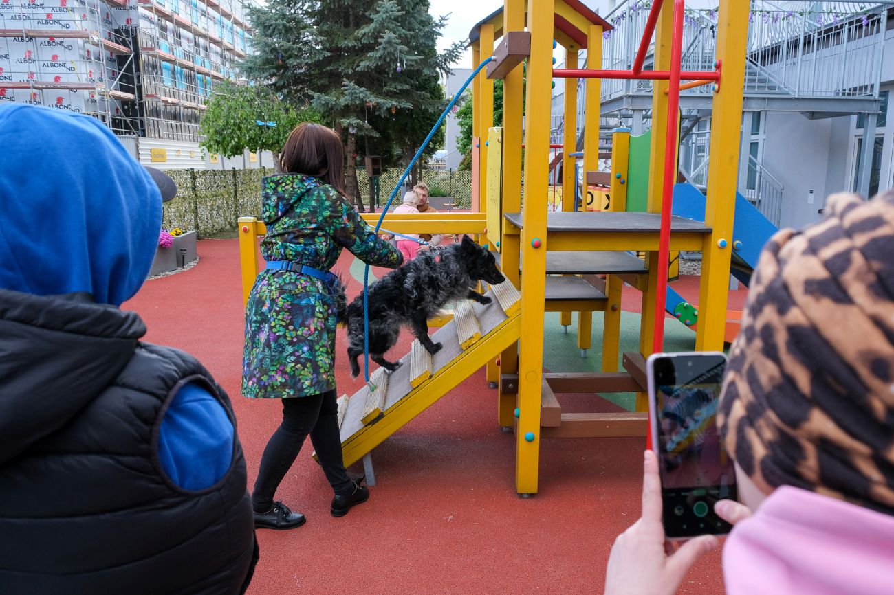 Podczas zajęć nie było możliwości głaskania pieska. To też jeden z elementów zajęć, by uczyć maluchy odpowiedzialności w kontaktach ze zwierzętami