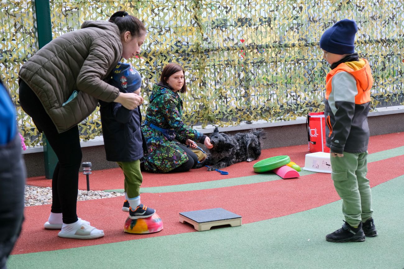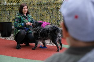 Dogoterapia jest bardzo szerokim pojęciem. Są to zajęcia edukacyjne, ale też zajęcia terapeutyczne. My największe sukcesy, wręcz spektakularne, mamy pracując z osobami z mózgowym porażeniem dziecięcym, np. czterokończynowym. Tam te dzieci są w stanie czytać, pisać, komunikować się właśnie przy udziale psa – wyjaśnia prowadząca zajęcia Gabriela Drwięga, dogoterapeutka z Fundacji Psi Uśmiech.