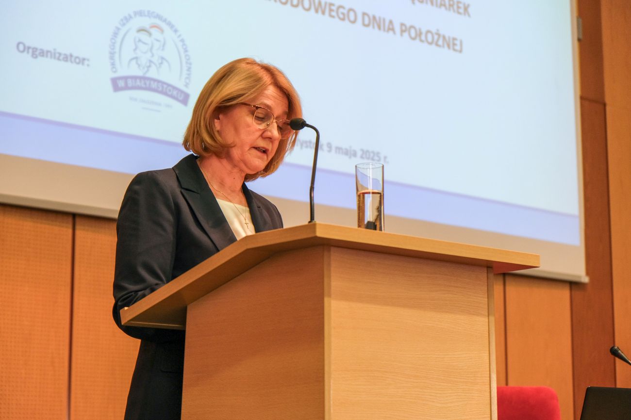 Dzisiejsze spotkanie to wyjątkowa okazja do zatrzymania się oraz wspólnej refleksji nad wartością codziennej pracy pielęgniarek i położnych. Zawodów, które łączą profesjonalizm z empatią, wiedzę z uważnością i procedury z człowieczeństwem – rozpoczęła swoje wystąpienie dr Beata Olejnik, przewodnicząca Okręgowej Rady Pielęgniarek i Położnych w Białymstoku.