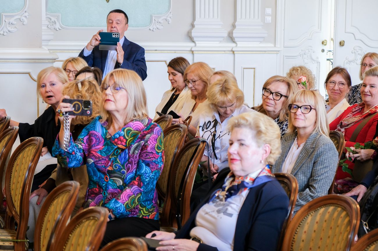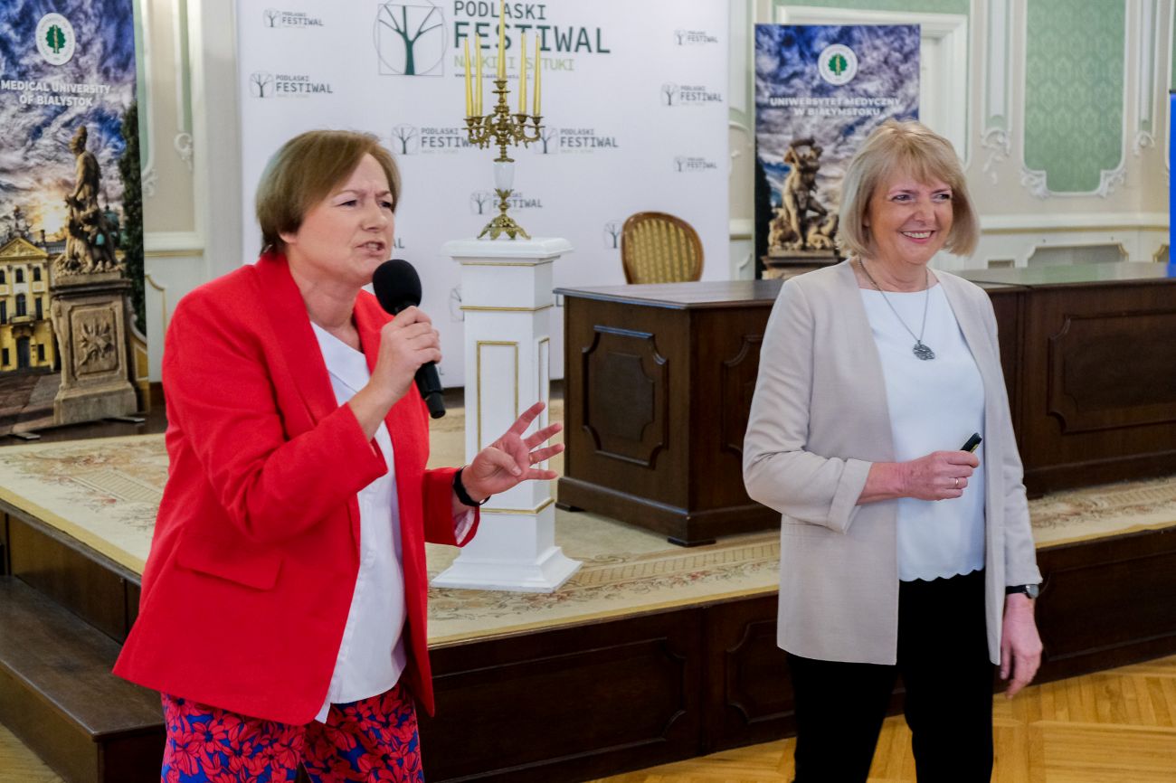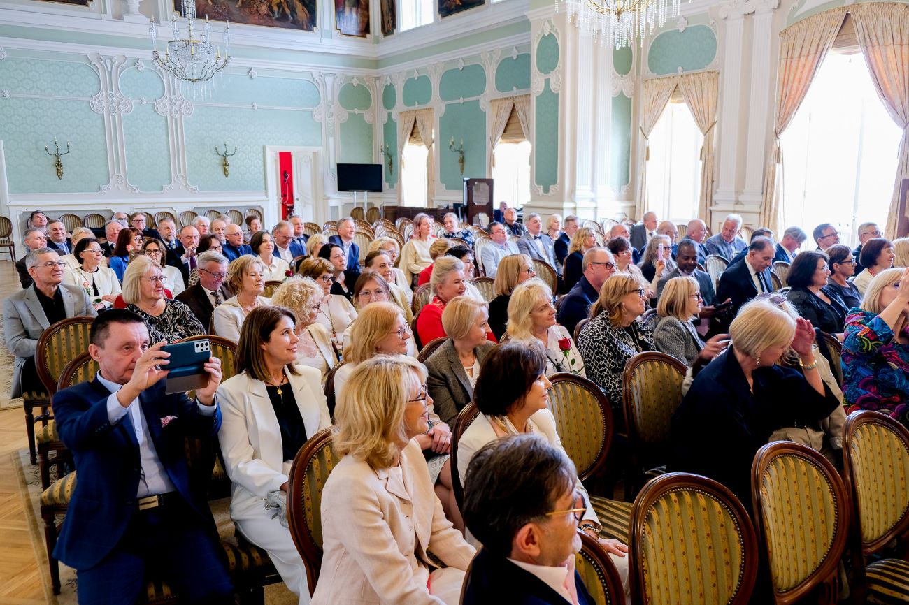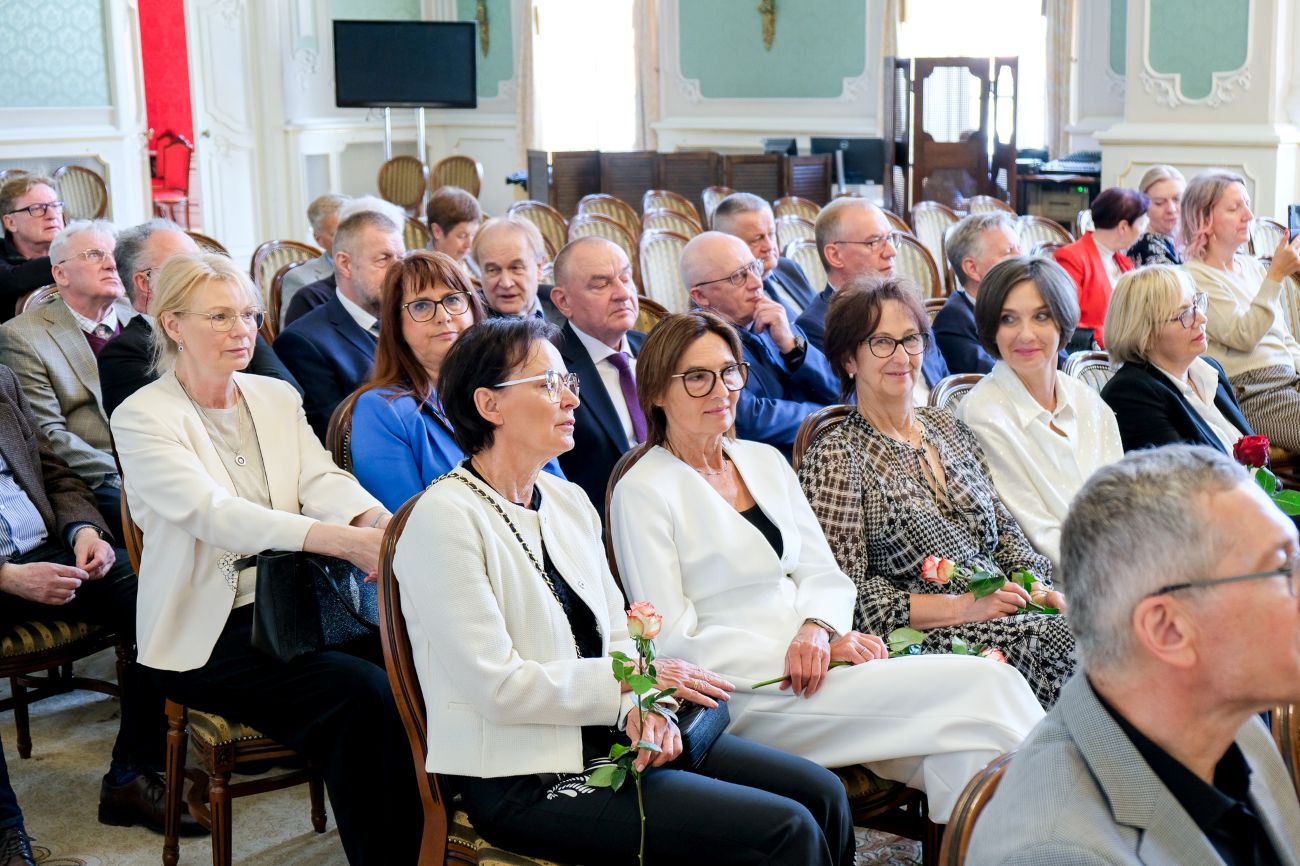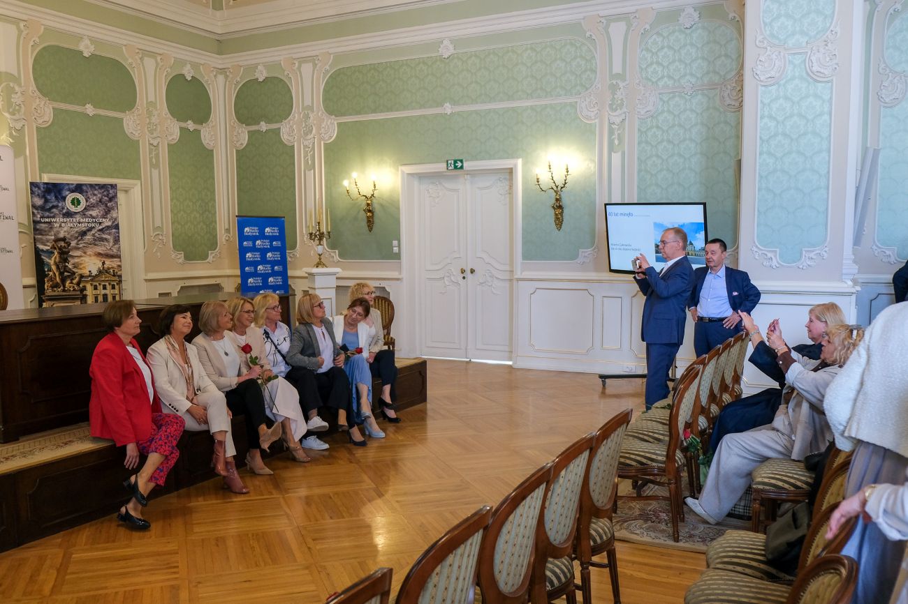 Kochani, obecność tutaj w pałacu i w ogóle na terenie uczelni jest okazją do wspomnień, do odwiedzenia naszych starych miejsc, ale również do zobaczenia, jak się pięknie rozwija nasza uczelnia, jak jest teraz wielkim uniwersytetem i jak pięknie zmienił się Białystok – powitała gości dawna starościna roku Barbara Olchowik-Sutuła.