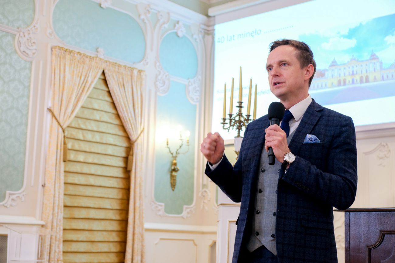 Jestem bardzo wzruszony tym, że chcecie się tu nadal spotykać. Pomimo ciężkiego czasu studiów, kolei losów, chcecie nadal przyjechać do swojej Uczelni. To jest coś cudownego. Przeżyliście tylu rektorów. Przepracowaliście 40 lat – po was absolutnie tego nie widać. Ta aula jest dla was, ten pałac jest dla was, nie czekajcie na okrągłe jubileusze, spotykajcie się co roku, a na 45-lecie i 50-lecie to już obowiązkowo – zapraszał do wspólnego świętowania rektor Marcin Moniuszko.