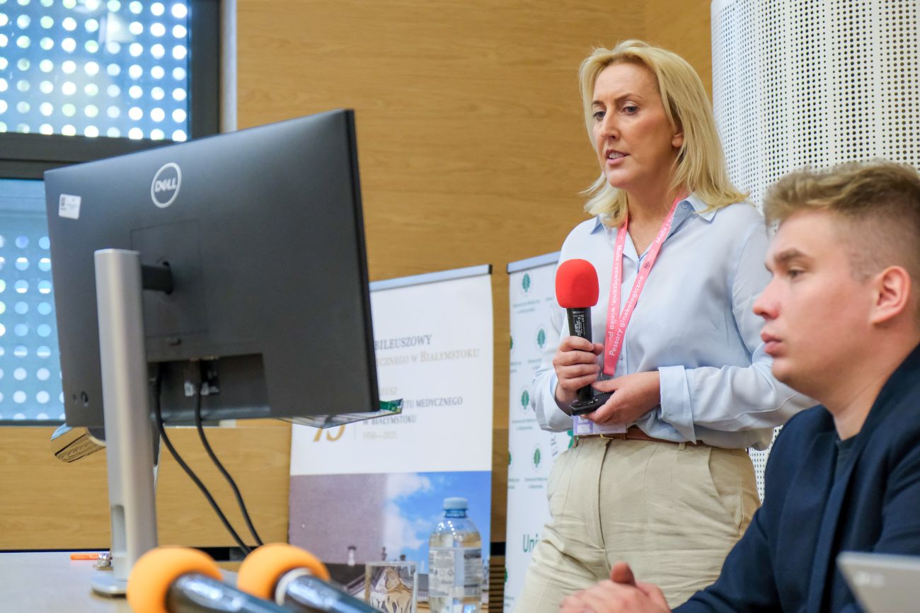 Gościem czwartkowej konferencji w Białymstoku była dr hab. Aleksandra Wesołowska - prezeska i współzałożycielka Fundacji Bank Mleka Kobiecego, naukowo związana z Warszawskim Uniwersytetem Medycznym.