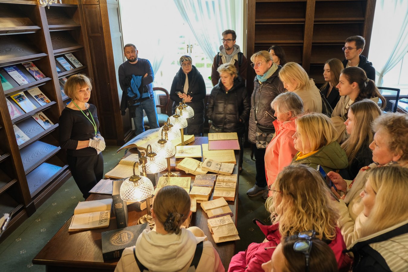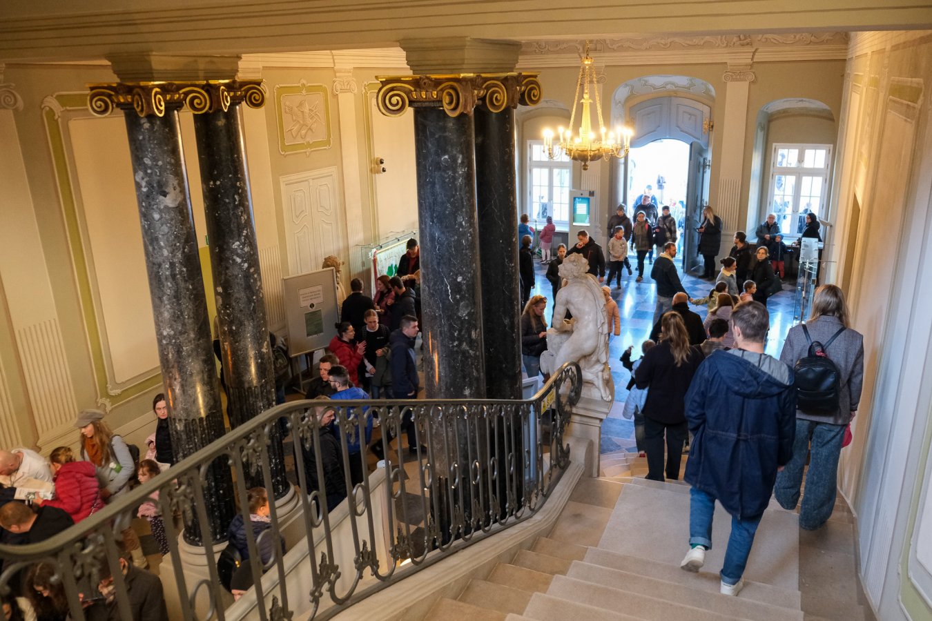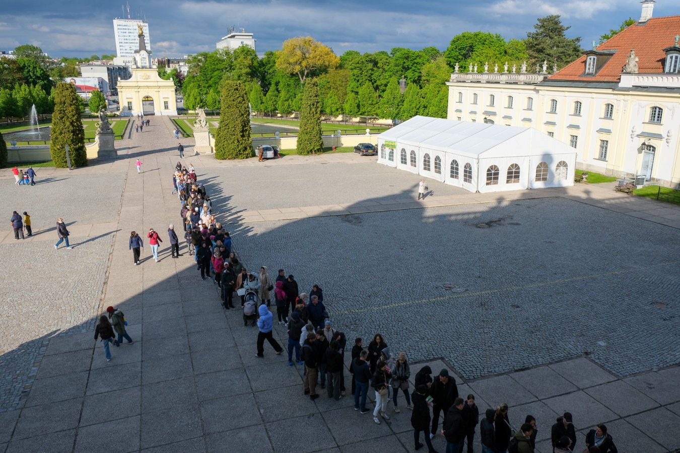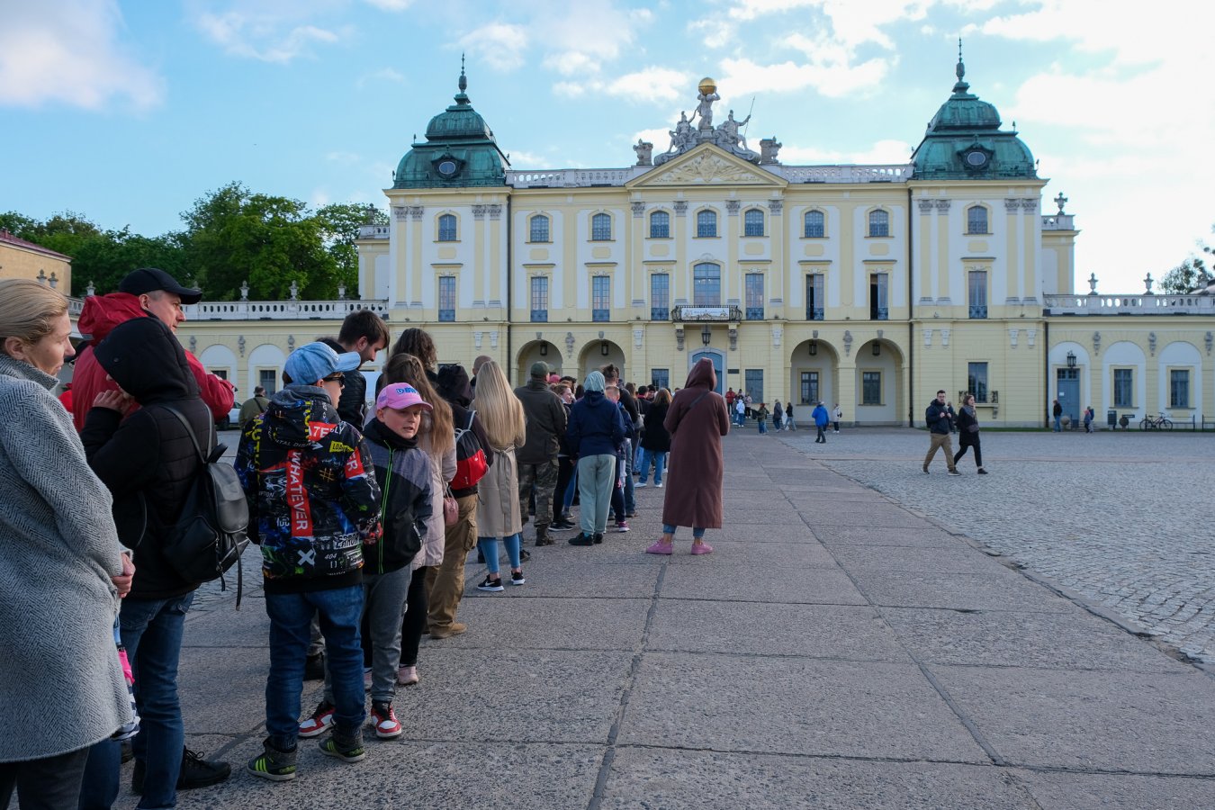 Formalnie Noc Muzeów w UMB zaczęła się w sobotę ( 17 maja 2025 r.) o godz.18:00. Jednak by zdobyć bezpłatne wejściówki do zwiedzania piwnic lub biblioteki, trzeba było przyjść pod Pałac Branickich ponad godzinę wcześniej. Kolejka chętnych wiła się przez cały dziedziniec. Przygotowanych było prawie 500 wejściówek do piwnic i ponad 150 do biblioteki (zwiedzanie odbywało się w grupach, co pół godziny).