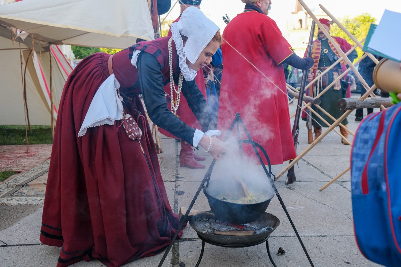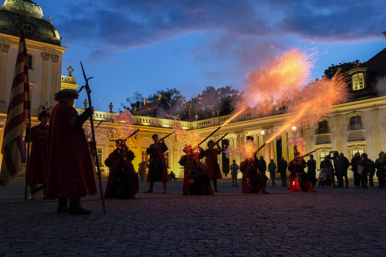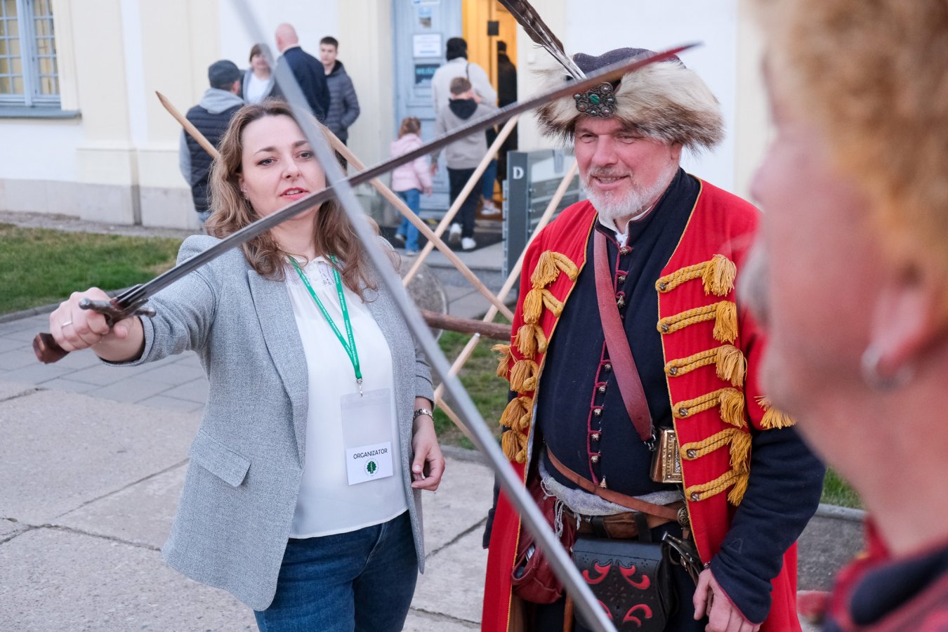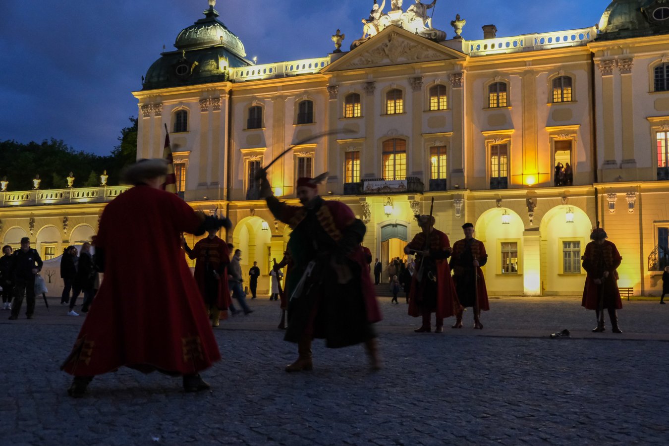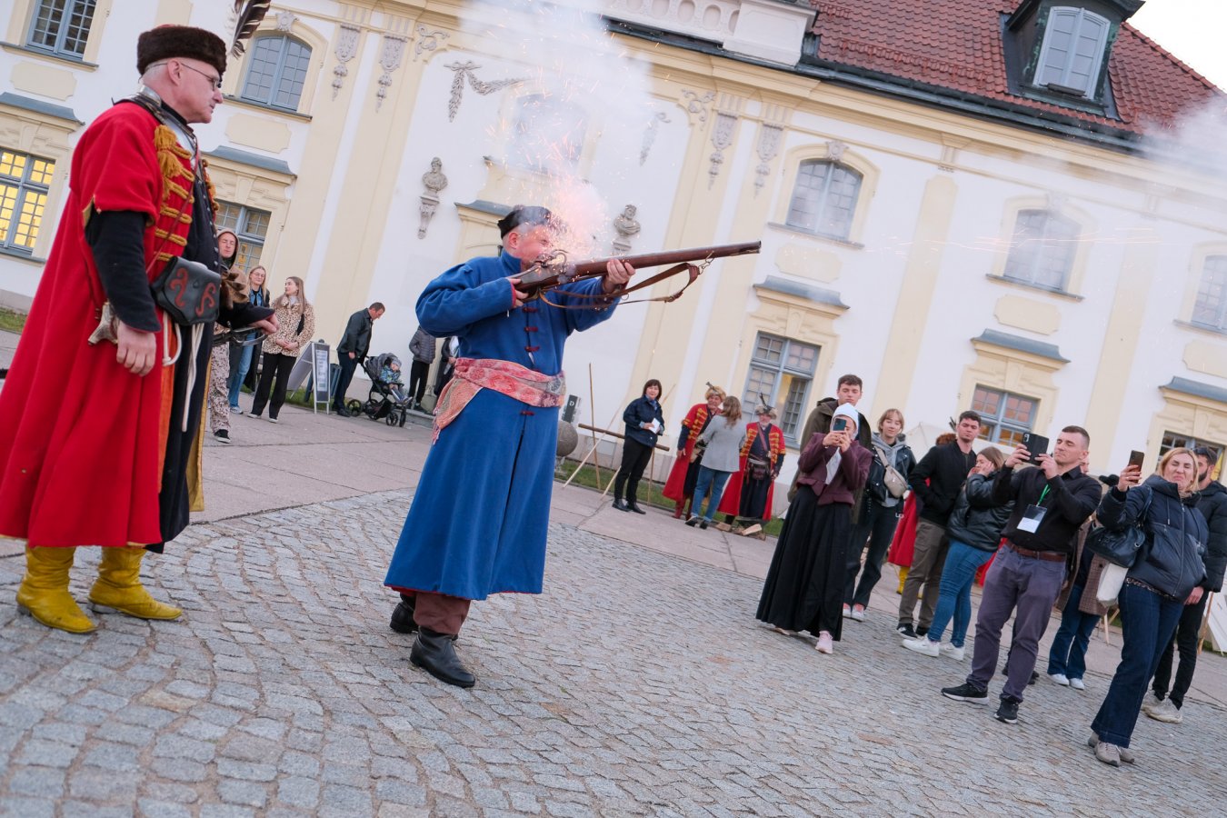 Zdecydowanie najgłośniejsi tego wieczoru byli miłośnicy rekonstrukcji historycznych, którzy wcieli się w Komputową Chorągiew Stefana Czarnieckiego. Na dziedzińcu rozbili swój obóz oraz ustawili zasieki przeciw kawalerii. Co jakiś czas salwą z armaty lub muszkietów pokazywali wojskowe umiejętności i zwyczaje z XVII-wieku. Na dodatek pojedynkowali się na szable i równie chętnie … pozowali do zdjęć.