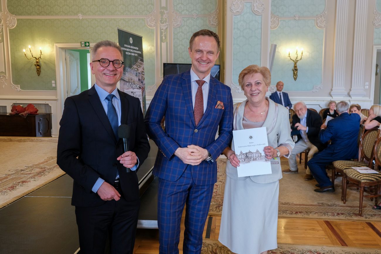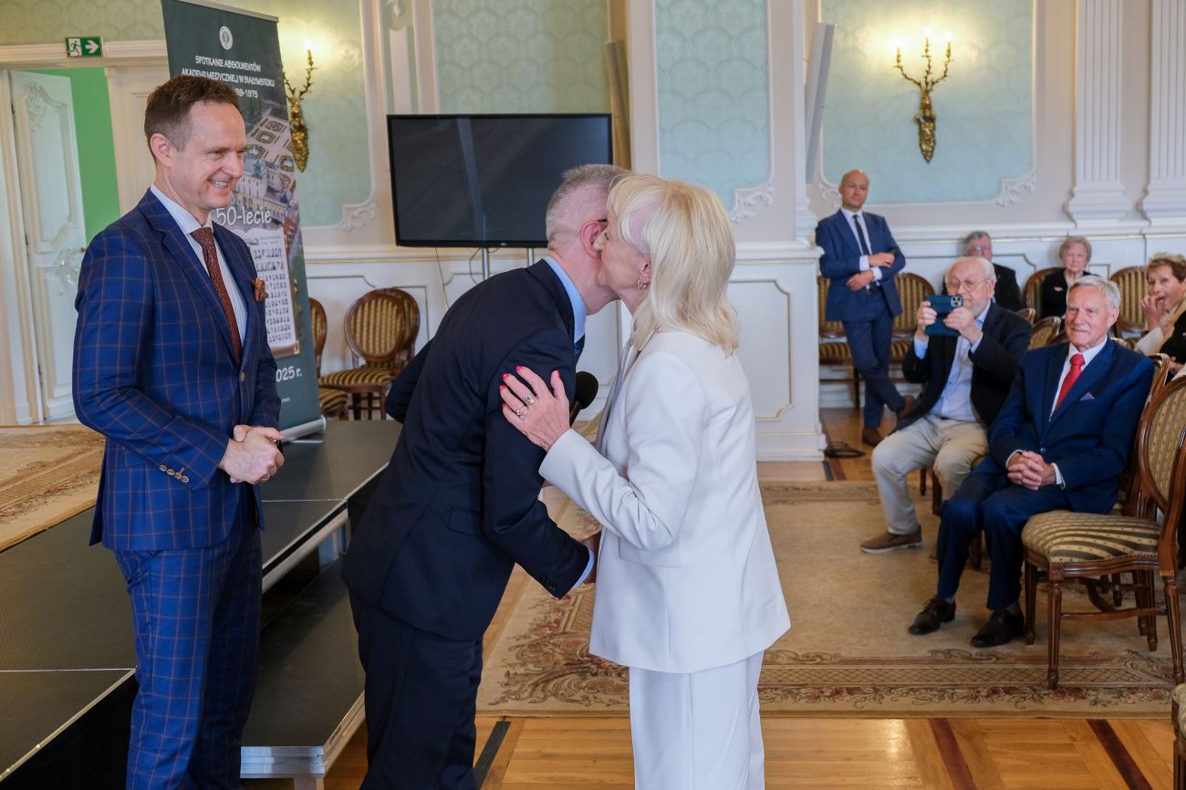 Prof. Marcin Moniuszko, rektor UMB: Ja chciałbym bardzo serdecznie Państwu podziękować za to, co zrobiliście przez tych 50 lat. Wasze dokonania dla tej Uczelni są ogromne. Każdy z Państwa, bo te losy śledziliśmy, odniósł niesamowity sukces osobisty i zawodowy. To pokazuje, ile daliście z siebie. Dzięki temu, czego nauczyliście się w czasie studiów, ile żyć ludzkich i ile zdrowia ludzkiego uratowaliście przez te pół wieku. Chciałbym Państwu powiedzieć, że oprócz tego, że bardzo Wam dziękujemy, to bardzo proszę Państwa o więcej. Ogromnie potrzebujemy Waszego doświadczenia, Waszej mądrości, Waszego ciepła. Bardzo chciałbym Państwa prosić, byście byli cały czas z nami.