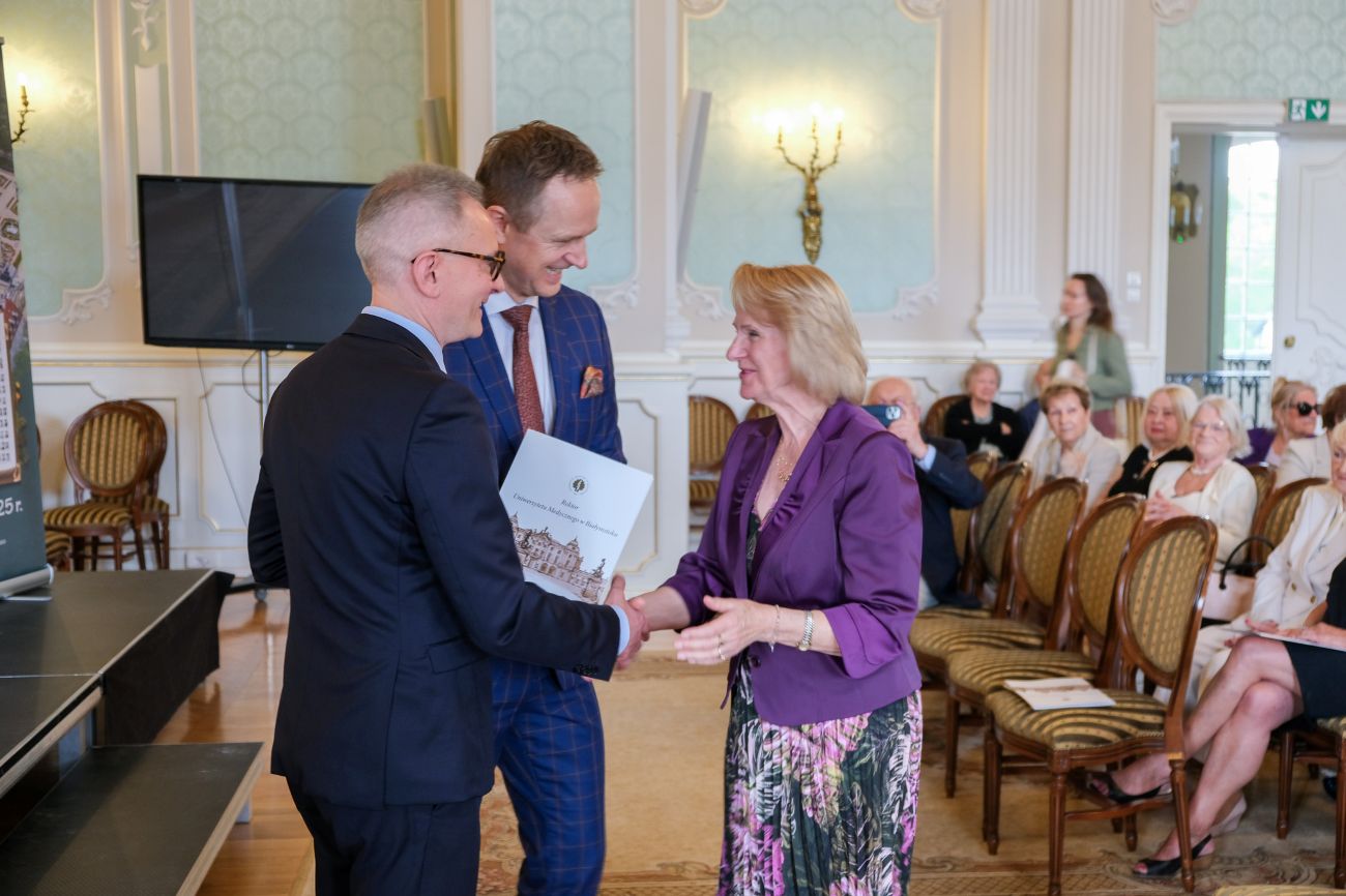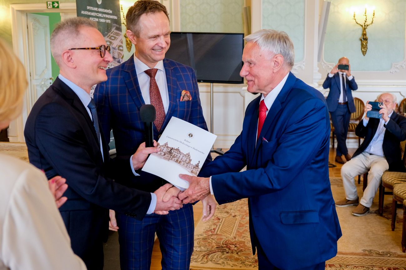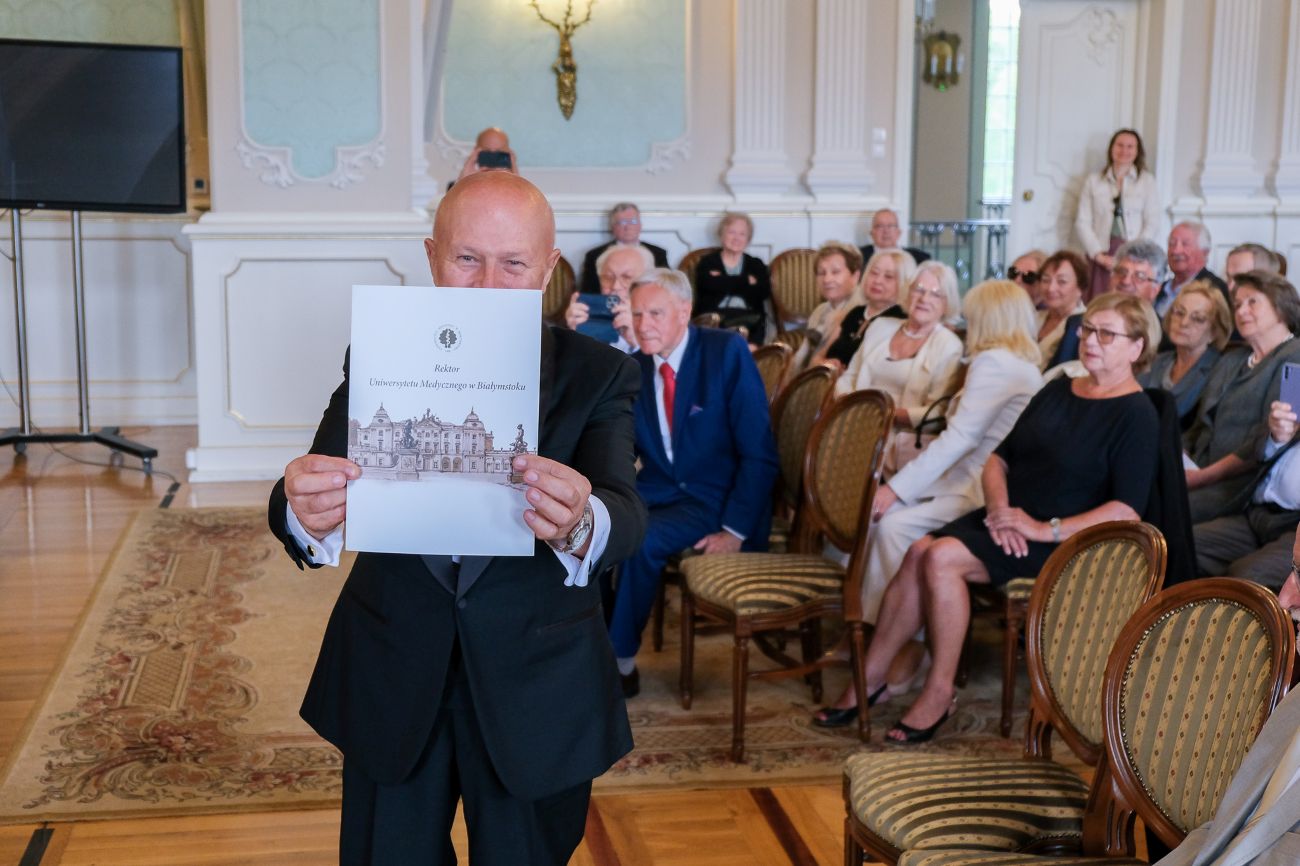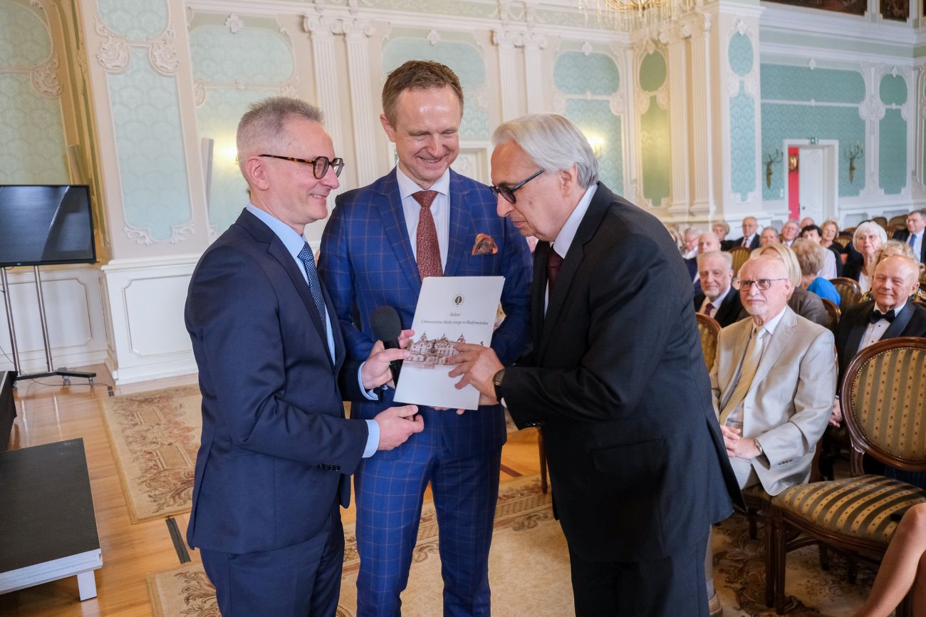 Podczas uroczystości władze Uczelni reprezentowali Rektor prof. Marcin Moniuszko oraz Dziekan Wydziału Lekarskiego prof. Tomasz Hryszko. Dla obu z nich to była okazja do ponownego spotkania swoich nauczycieli ze studiów oraz opiekunów w klinikach, kiedy obaj zaczynali swoje zawodowe kariery.
