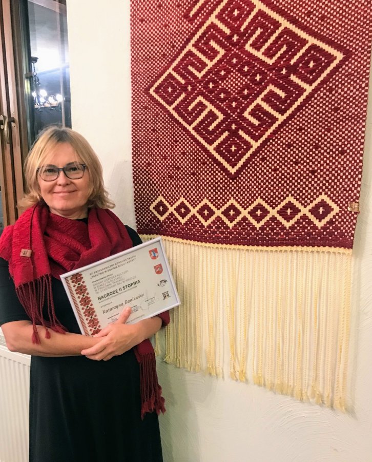 Gdy w 2020 roku świat się zatrzymał i niemal wszyscy zostaliśmy zamknięci w domach, szukając ukojenia w książkach, filmach czy pieczeniu chleba, Katarzyna Daniewicz – kierowniczka Działu ds. Zintegrowanego Systemu Zarządzania Uczelnią – odkryła coś, co z kolei całkowicie odmieniło jej codzienność. Przypadkowo trafiła w Internecie na filmy Podlaskiego Instytutu Kultury na temat regionalnego tkactwa i - jak sama mówi - tkanie wciągnęło ją jak narkotyk i dziś już nie potrafi bez niego funkcjonować.
