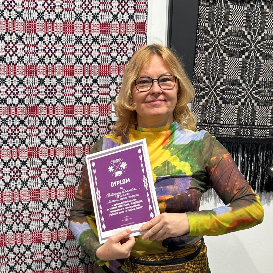 Dziś jej prace i pomysły na adaptację tkaniny ludowej na współczesny grunt są liczne nagradzane na konkursach rękodzielniczych. Ona sama otrzymała stypendia artystyczne od Marszałka Województwa Podlaskiego i Prezydenta Miasta Białegostoku, a pracownia Strefa Tkania - położona na Szlaku Rękodzieła Ludowego - stała się ważnym punktem na mapie współczesnego, podlaskiego rzemiosła inspirowanego tradycją.