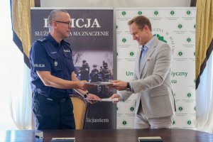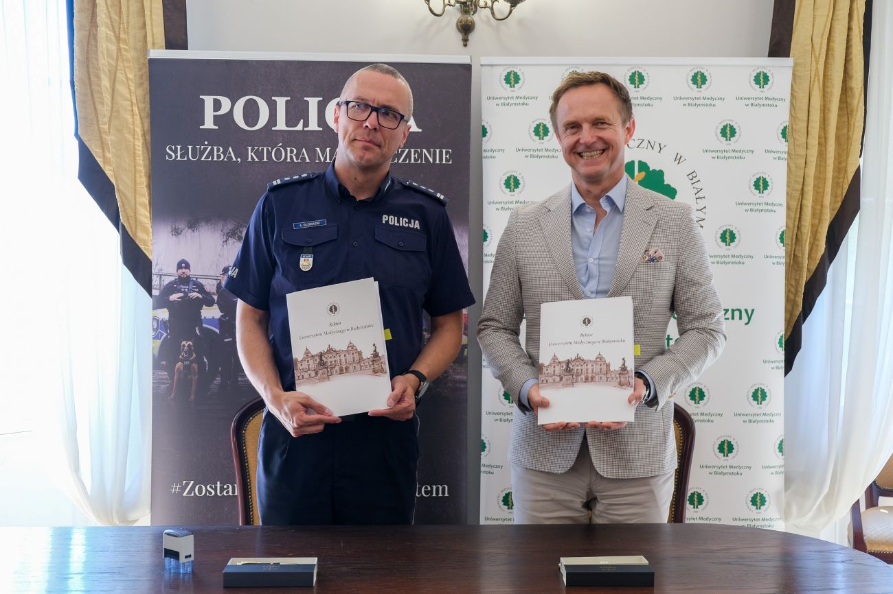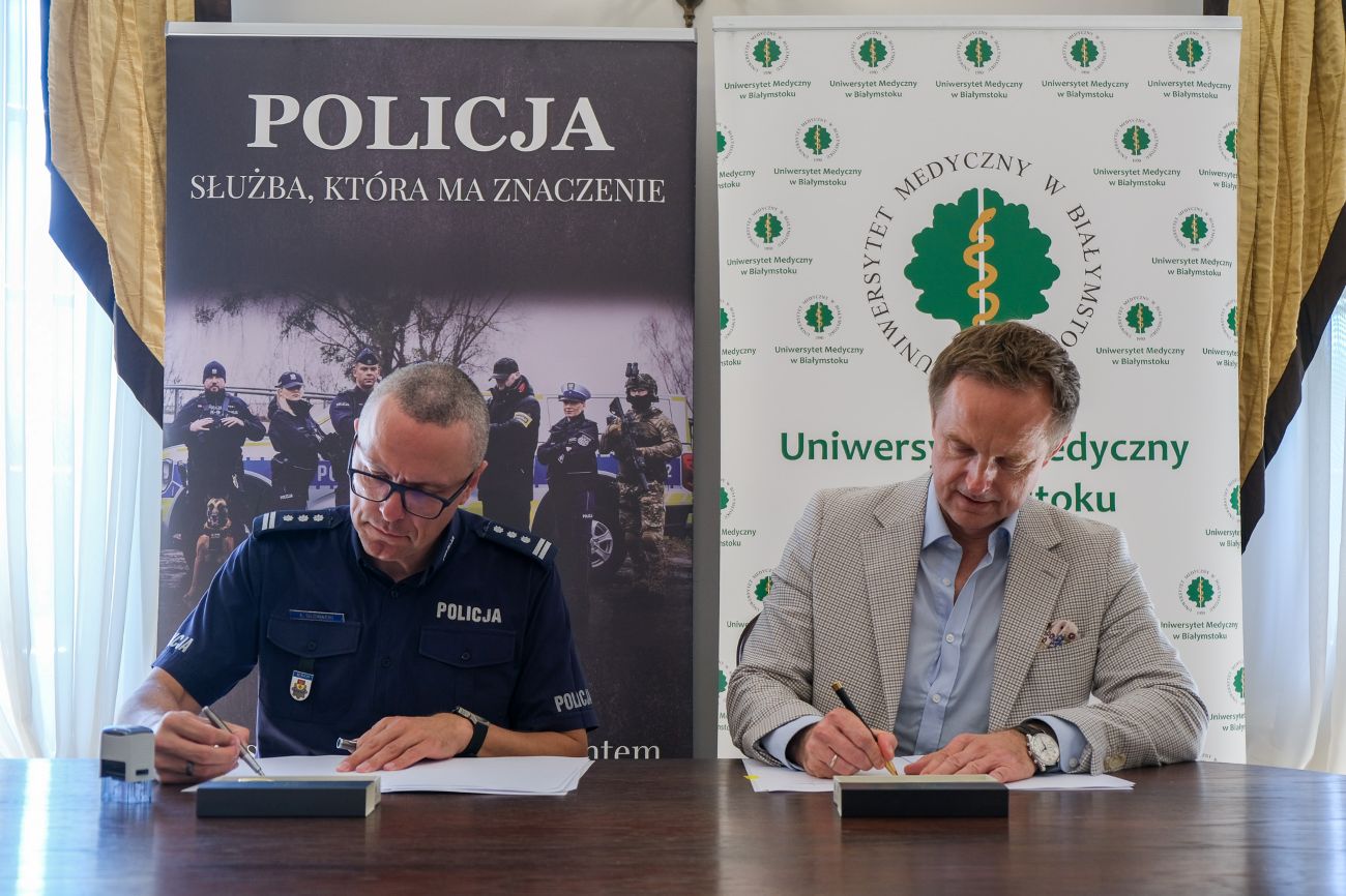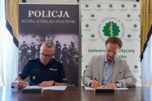 Wykłady na temat prewencji kryminalnej, wspólne akcje promujące bezpieczeństwo, ale też sprawniejsze reagowanie na sytuacje kryzysowe – w poniedziałek (21 lipca 2025r.) rektor UMB Marcin Moniuszko i komendant białostockiej policji insp. Łukasz Głowacki zawarli porozumienie o współdziałaniu.