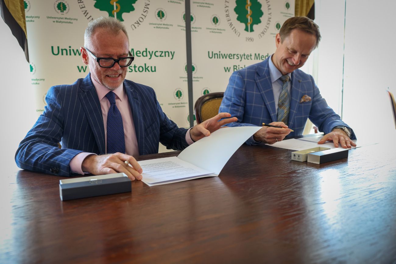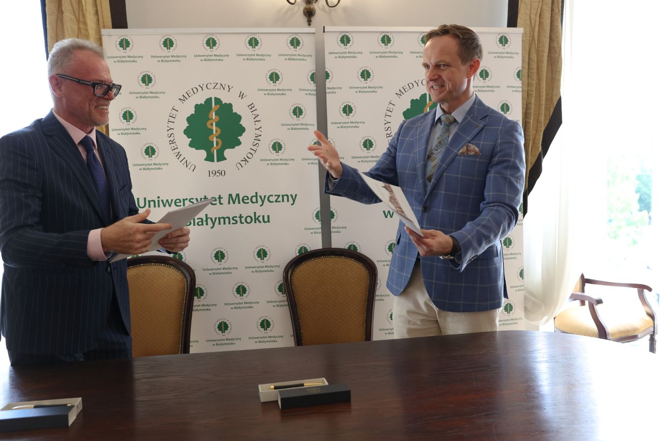 Wspólne działania służące promocji zdrowia oraz szeroko rozumianej profilaktyki – takie zapisy znalazły się w podpisanym we wtorek (5 sierpnia 2025r.) liście intencyjnym o współpracy pomiędzy Uniwersytetem Medycznym w Białymstoku a #Stowarzyszeniem Onco Victory. List podpisali Rektor UMB prof. Marcin Moniuszko i Prezes Stowarzyszenia prof. Paweł Knapp. Współpraca obejmować ma także upowszechnianie wiedzy dotyczącej zdrowego stylu życia wśród mieszkańców województwa.