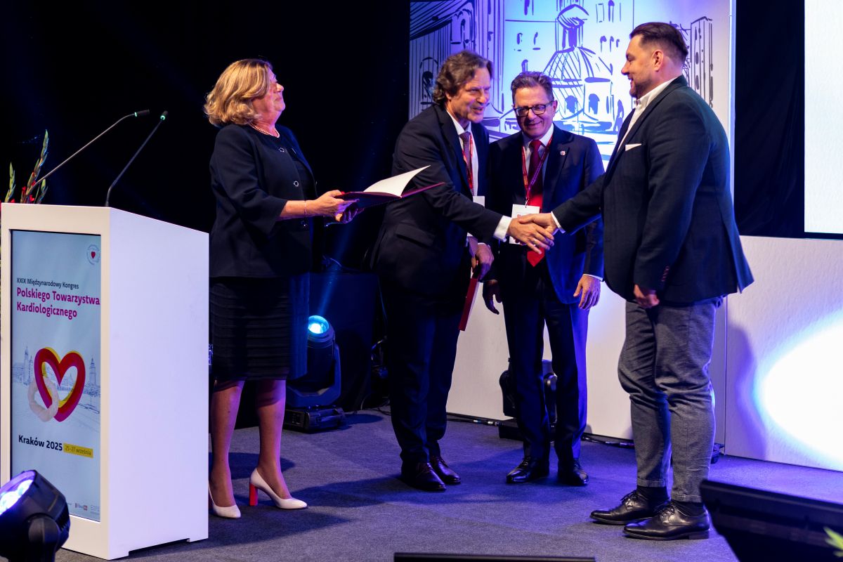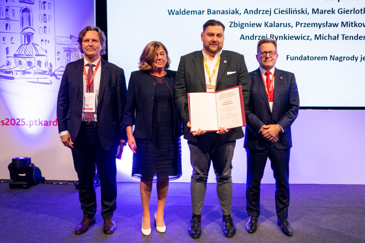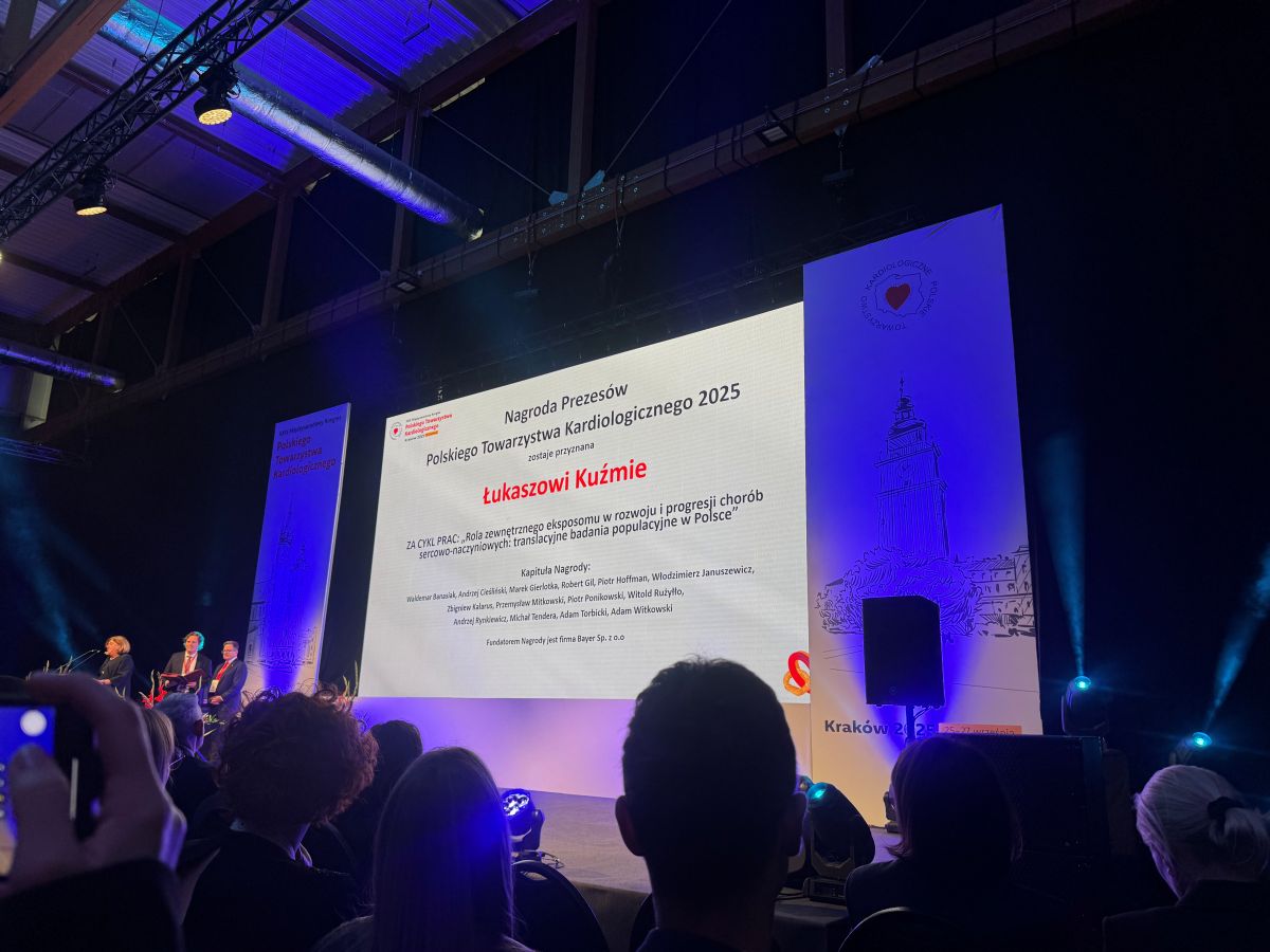Dr hab. n. med. Łukasz Kuźma otrzymał Nagrodę Prezesów Polskiego Towarzystwa Kardiologicznego za cykl prac pt. „Rola zewnętrznego eksposomu w rozwoju i progresji chorób sercowo-naczyniowych: translacyjne badania populacyjne w Polsce”. To pierwszy w kraju ogólnokrajowy projekt, który łączy real-world data z zaawansowanym modelowaniem narażenia środowiskowego opartym na zobrazowaniach satelitarnych programów Copernicus i NASA.