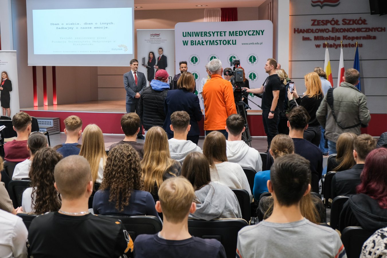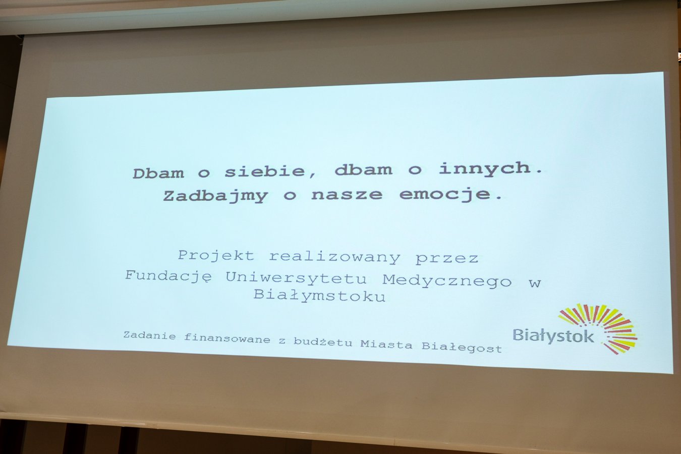 Jak zapanować nad złością, stresem spowodowanym kolejnymi klasówkami i emocjami, kiedy oceny nie są takie, jak sobie wymarzyliśmy? Rodzice znowu czegoś chcą, a świat ciebie nie rozumie?! Fundacja Uniwersytetu Medycznego w Białymstoku zrealizuje projekt „Dbam o siebie, dbam o innych. Zadbajmy o nasze emocje“. To próba znalezienia sposobu na obniżenie niepotrzebnego stresu, negatywnych emocji towarzyszących dzieciom i młodzieży w szkole (przedszkolu), w domu, czy na podwórku. W środę w Zespole Szkół Handlowo-Ekonomicznych w Białymstoku zainaugurowano realizację tego pilotażowego projektu. Na razie obejmie on cztery placówki: właśnie Zespół Szkół Handlowo - Ekonomicznych, Szkoły Podstawowe nr 10 i 26 oraz Przedszkole Samorządowe nr. 80.