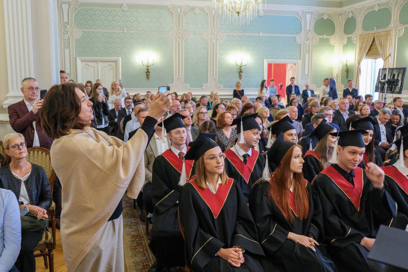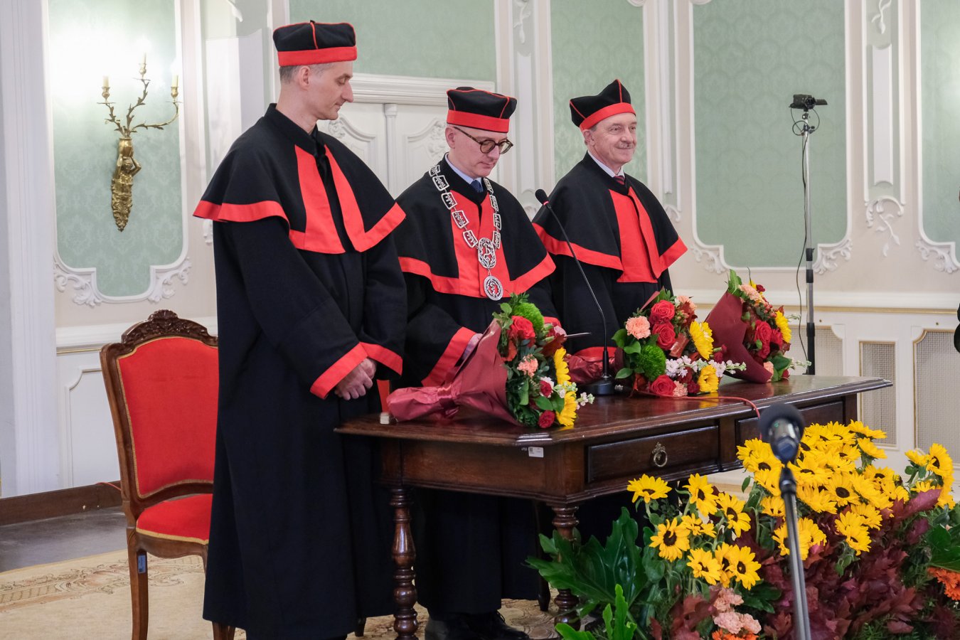 Na szczęście w tę drogę absolwenci UMB nie ruszają sami. Obok są rodziny, bliscy i przyjaciele, gotowi dmuchać im w żagle. Na dzisiejszej uroczystości stawili się licznie, z kwiatami i życzeniami. I to ich serdecznie, i w pierwszej kolejności powitał gospodarz wydarzenia, prof. Tomasz Hryszko, Dziekan Wydziału Lekarskiego z Oddziałem Stomatologii i Oddziałem Nauczania w Języku Angielskim.