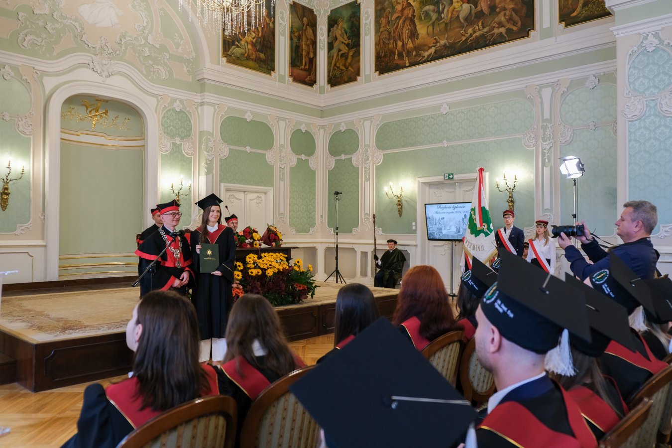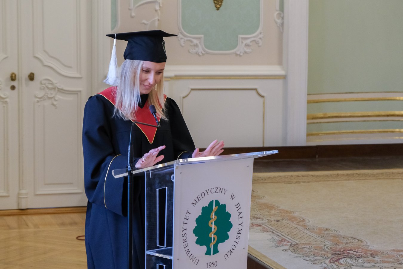 Do jej słów dołączyła starościna roku kierunku lekarsko-dentystycznego Aleksandra Magnuszewska: Ten dyplom to nie tylko nasze osiągnięcie, ale też Wasze zwycięstwo - zwróciła się do rodziców i bliskich. Specjalnie podziękowania i kwiaty trafiły w ręce władz Uczelni.