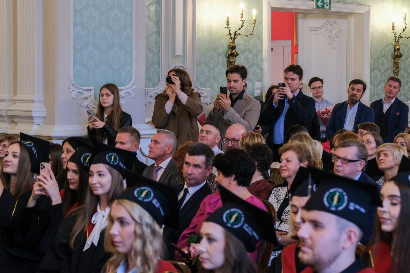 Wśród braw wykładowców, gości i kolegów dyplomy odebrali absolwenci kierunku lekarsko-dentystycznego oraz higieny stomatologicznej.