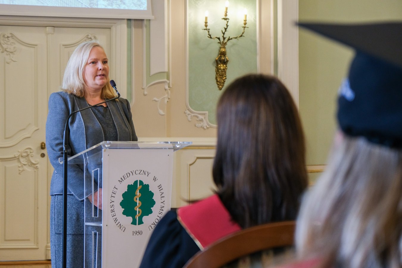 Wśród gości uroczystości znaleźli się również m.in. dr n. med. Romuald Knaś z Okręgowej Rady Lekarskiej w Białymstoku, Rektor UMB prof. Marcin Moniuszko, Prorektor ds. nauki i ewaluacji prof. Irina Kowalska, dr hab. Joanna Bagińska - koordynator kierunku higiena stomatologiczna, mgr Jolanta Tobiś-Rozwarska - kierownik Studium Wychowania Fizycznego i Sportu, przedstawiciele Samorządu Studentów i Polskiego Towarzystwa Studentów Stomatologii, a także prodziekani Wydziału Lekarskiego: prof. Dariusz Lebensztejn oraz prof. Marcin Baranowski.