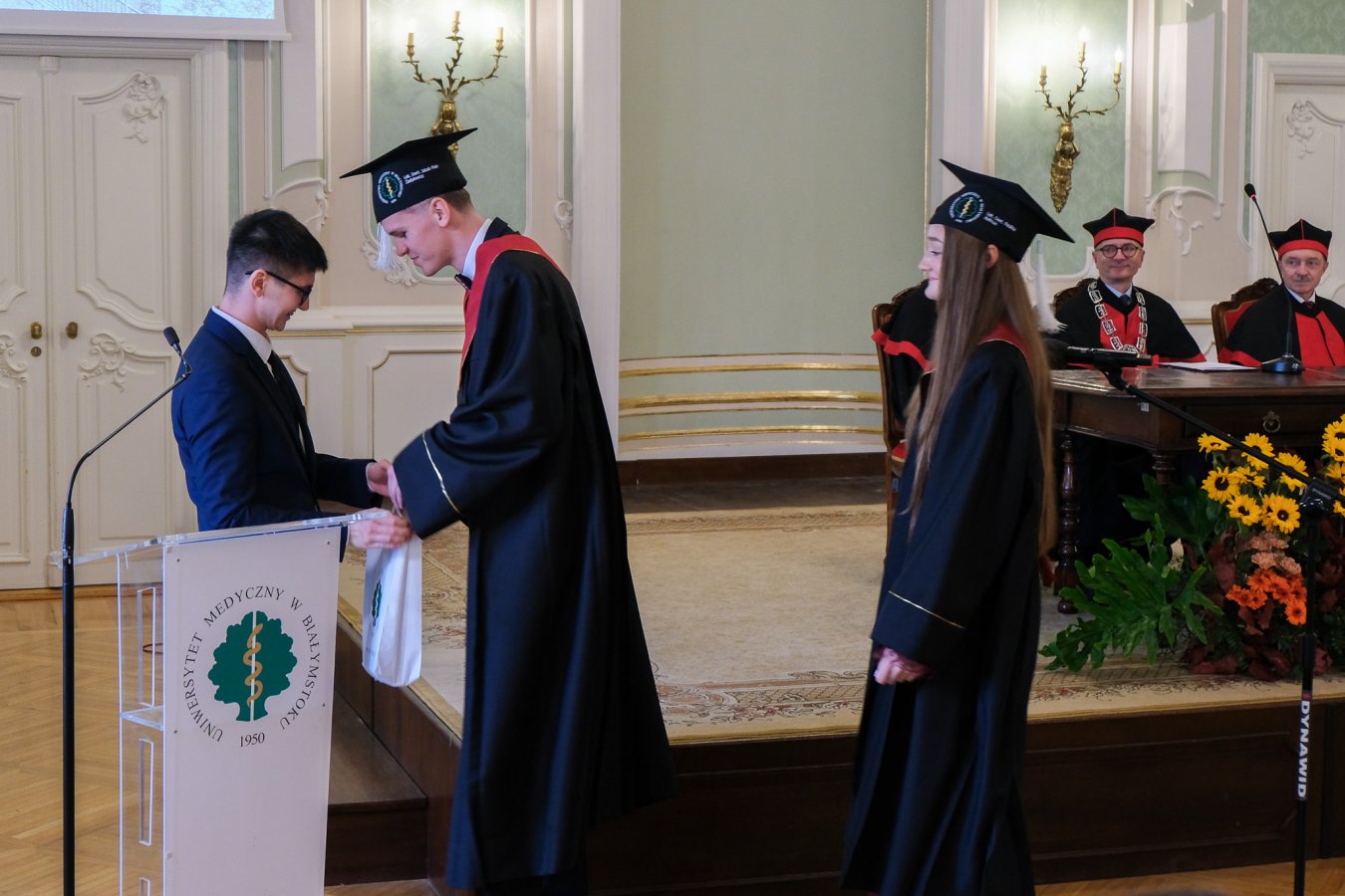 W imieniu studenckiej społeczności wystąpił również przewodniczący Samorządu Studentów Sebastian Bobryk, a następnie – jako reprezentant Polskiego Towarzystwa Studentów Stomatologii Oddział Białystok – wręczył podziękowania aktywnym studentom działającym towarzystwie. Wyróżnienia otrzymali: Jakub Piotr Zadykowicz, Neonila Małgorzata Gołębicka, Paulina Hofman.