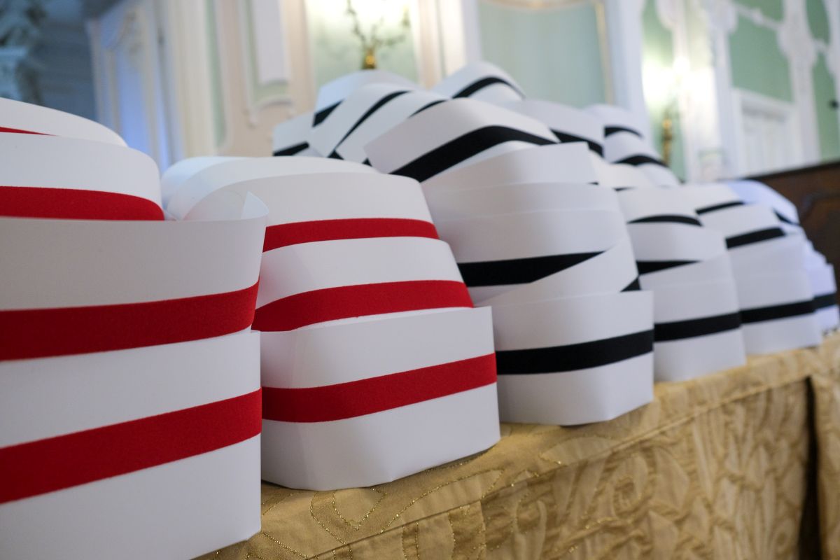 W trakcie czepkowania, czepek jest nakładany tylko paniom. Panowie otrzymują specjalną wpinkę w kształcie czepka, którą mogą nosić na swoim fartuchu.