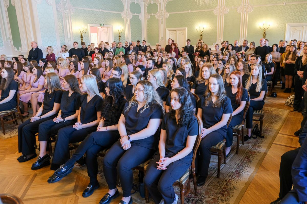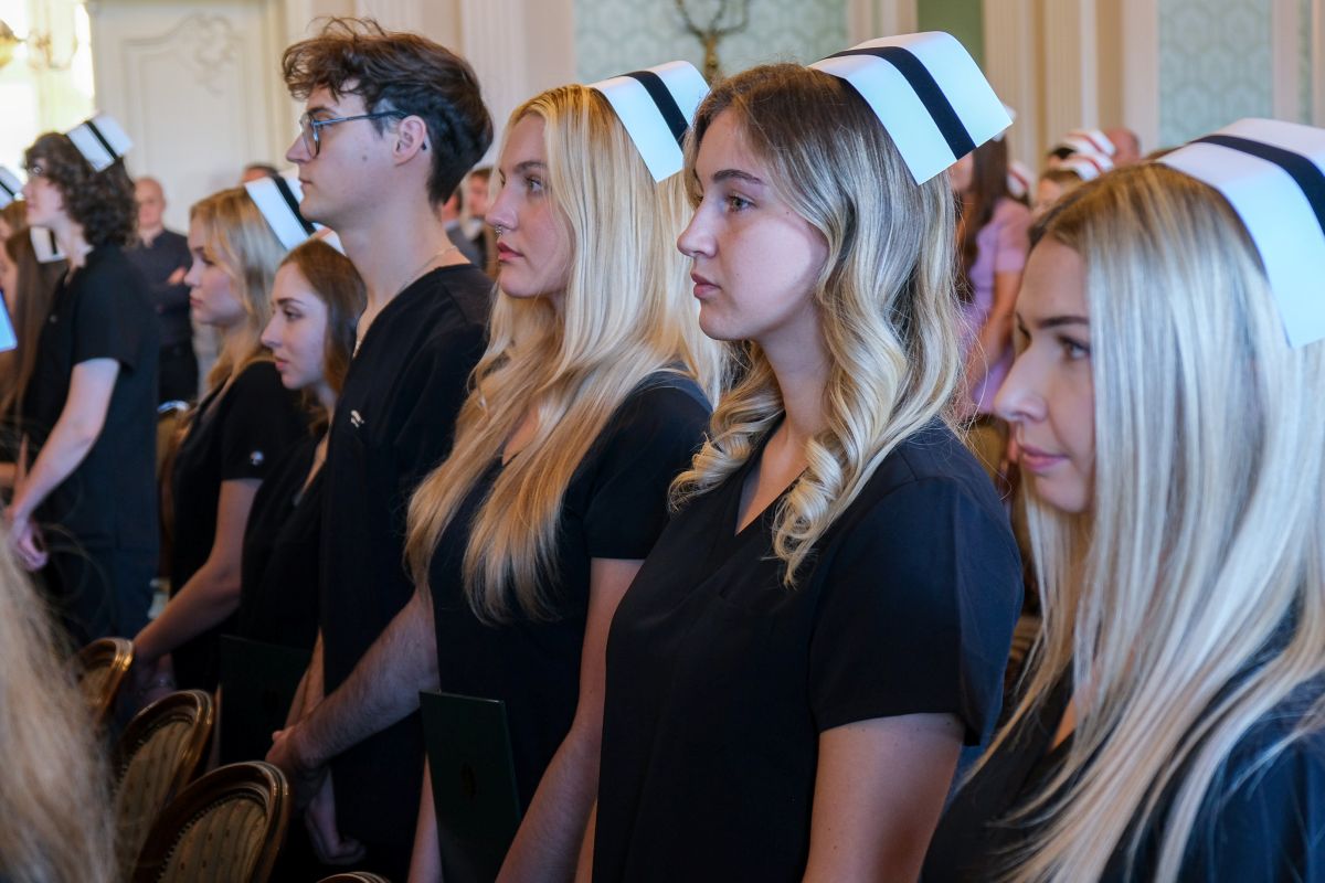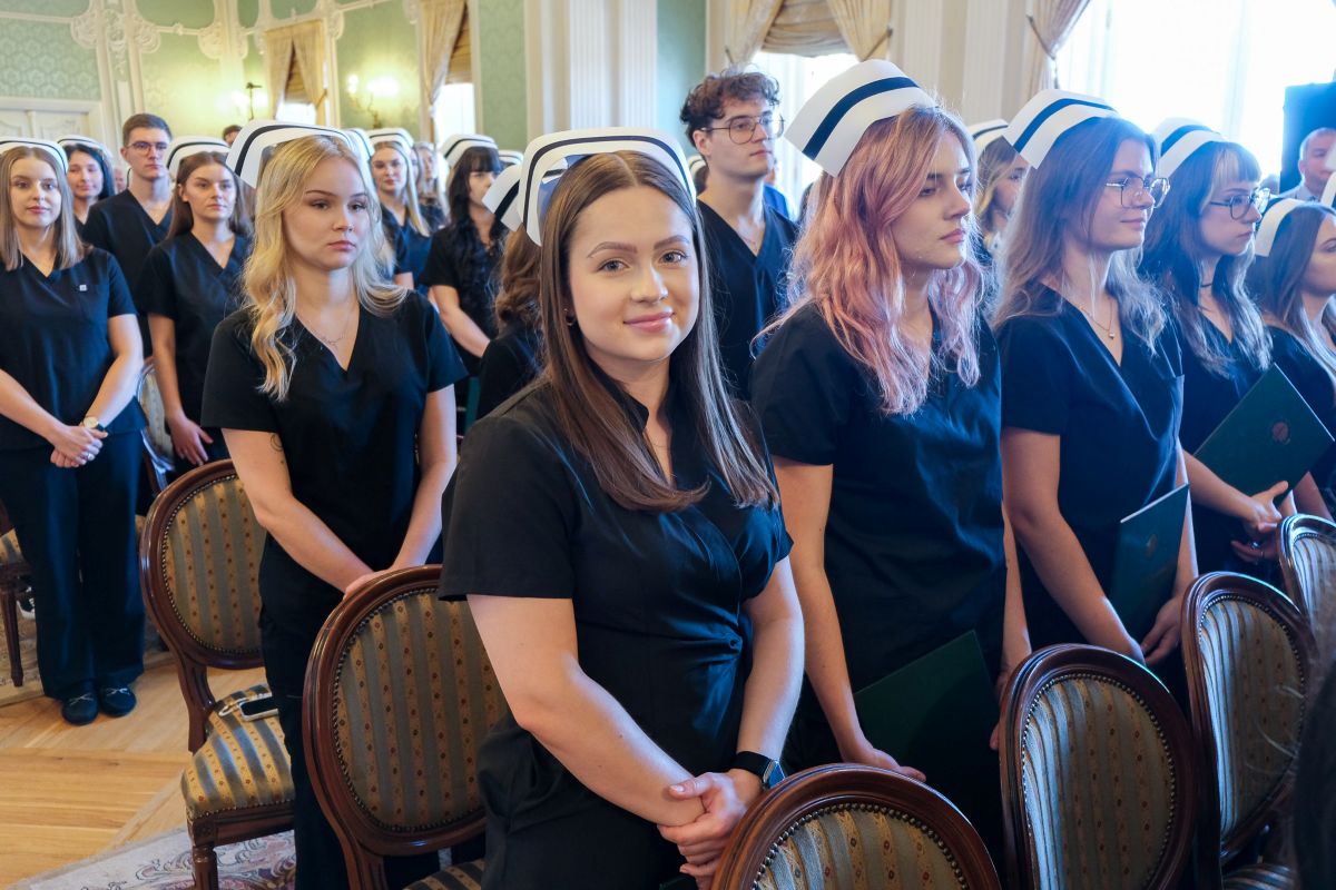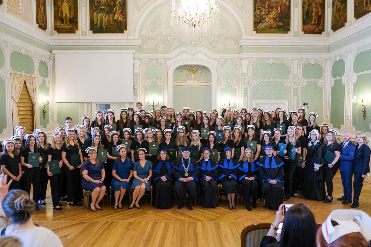 We wtorkowe południe (21 października 2025r.), w Aula Magna Pałacu Branickich, odbyło się uroczyste dyplomatorium studentów I stopnia studiów na kierunku pielęgniarstwo i położnictwo, połączone z czepkowaniem. 128 nowych pielęgniarek i pielęgniarzy oraz 31 położnych odebrało swoje dokumenty poświadczające nabyte kwalifikacje.