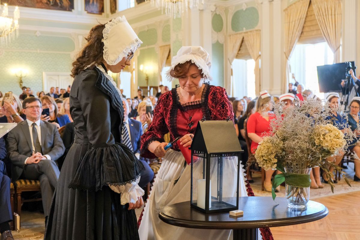 Uroczystość czepkowania poprzedziło ślubowanie na wierność ideałom zawodu, które odczytał Dziekan Terlikowski, a także zapalenie lampionu Florence Nightingale. To ją uważa się za twórczynię współczesnego pielęgniarstwa. Żyła na przełomie XIX i XX wieku. Pochodziła z bardzo zamożnej rodziny, a mimo to uznała, że jej powołaniem jest pomaganie chorym ludziom. Całe życie poświęciła pacjentom. Kiedy podczas epidemii chorób zakaźnych, opiekowała się żołnierzami brytyjskimi w Turcji, przechadzała się w nocy po szpitalu z zapaloną lampką oliwną. Chciała sprawdzić czy z jej pacjentami wszystko jest w porządku. Chorzy zaczęli nazywać ją „damą z lampą".