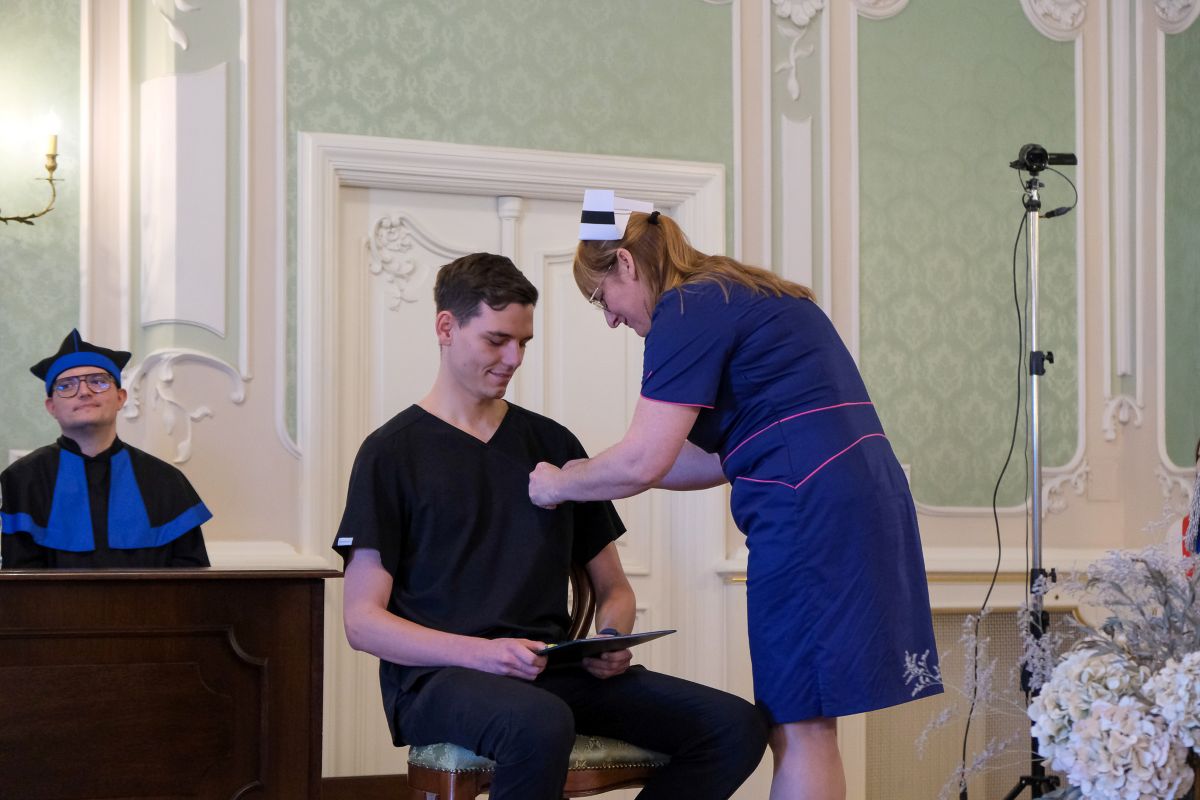 I dodał: Zawody, które wybraliście nie są łatwe, wymagają wiedzy, odpowiedzialności, siły ducha i ogromnego serca. Każdy gest, każde dobre słowo, każdy uśmiech może przynieść choremu nadzieję i poczucie bezpieczeństwa.