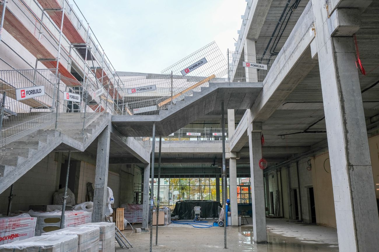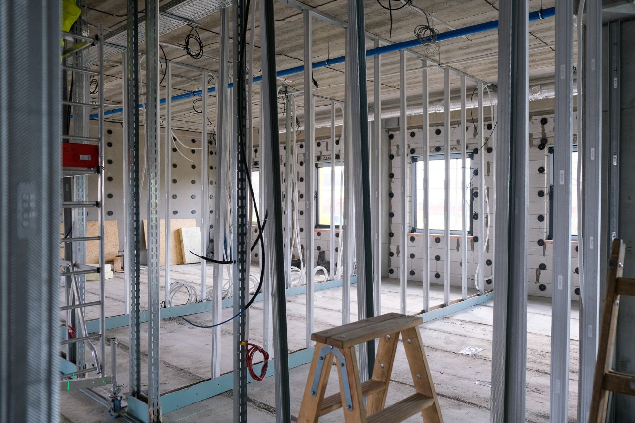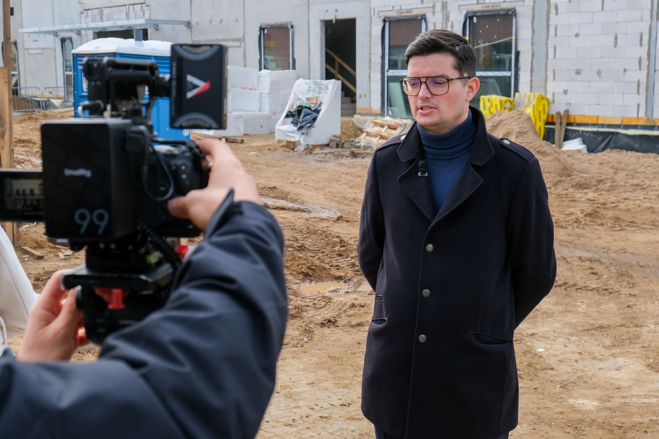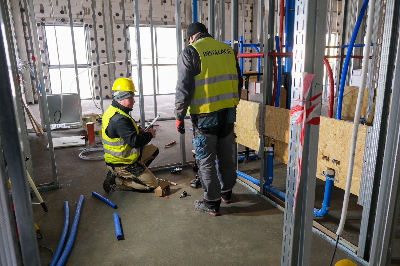 Paweł Żeruń, kierownik budowy: Zaawansowanie prac oceniam na około 70 procent. Jest postawiona główna konstrukcja parafabrykowana, stelaże wszystkich ścianek działowych. Trwają prace związane z wykonaniem centralnego ogrzewania poszczególnych kondygnacji oraz szlicht posadzkowych. Jesteśmy na ukończeniu prac związanych z wykonywaniem instalacji kanalizacji deszczowej. Przed nami jeszcze gros prac wykończeniowych, ale one będą się już odbywać wewnątrz budynku, więc zima nam nie będzie przeszkadzać.