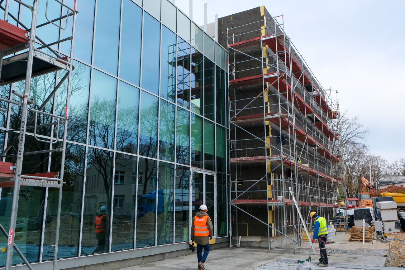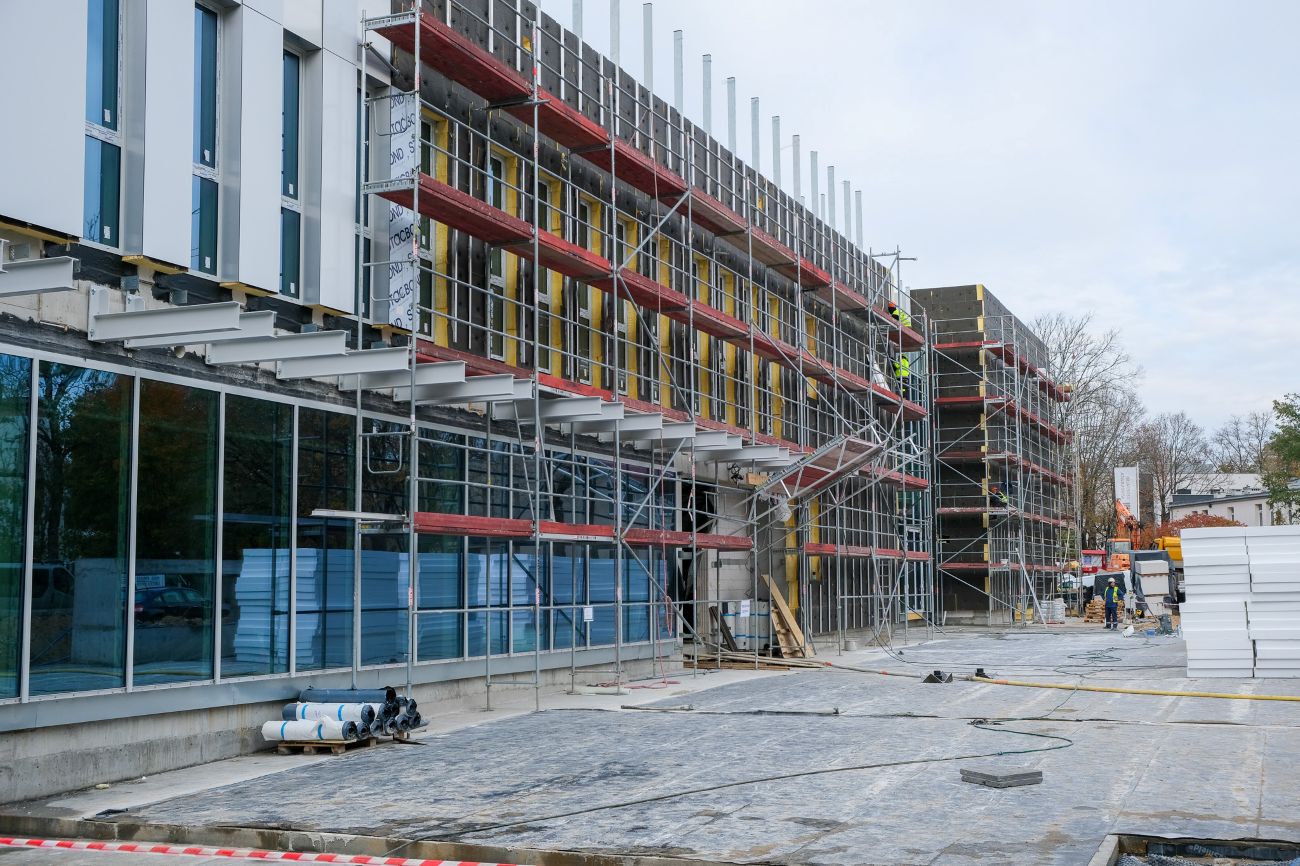Dokładnie rok temu Uczelnia podpisała z firmą Adamietz umowę na realizację w trybie „zaprojektuj i zbuduj” nowego Centrum Pielęgniarstwa UMB. Po roku budynek jest gotowy w prawie 70 procentach. Koniec prac zaplanowano na luty przyszłego roku. Potem rozpocznie się wyposażanie obiektu.