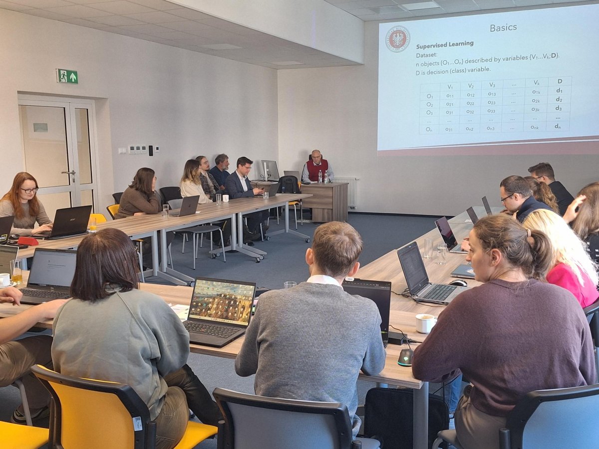 Wtorek, 21 października, upłynął pod znakiem analizy przyczynowości i nowoczesnych metod uczenia maszynowego w biomedycynie. Prof. Alexander Teumer – kierownik grupy badawczej na Uniwersytecie Medycznym w Greifswaldzie, od 2020 r. związany także z UMB jako profesor nadzwyczajny w Zakładzie Medycyny Populacyjnej i Prewencji Chorób Cywilizacyjnych – wprowadził uczestników w temat randomizacji Mendla. Prof. Witold Rudnicki z Wydziału Informatyki Uniwersytetu w Białymstoku, dr Krzysztof Mnich i mgr inż. Piotr Stomma z Politechniki Wrocławskiej pokazali, jak uczenie maszynowe wspiera odkrywanie biomarkerów w zdrowiu publicznym.