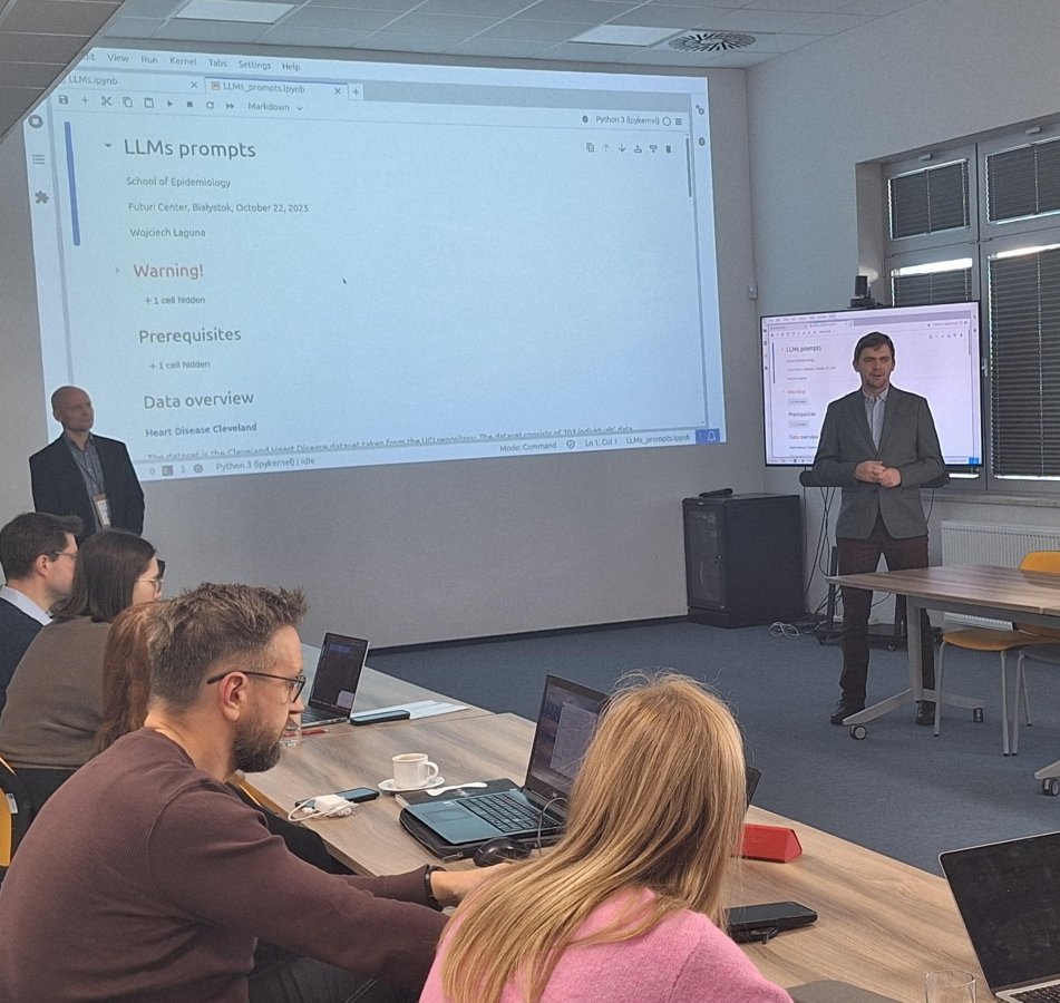 W kolejnych dniach dr Franciszek Rakowski i dr Jan Kisielewski poprowadzili zajęcia z modelowania chorób zakaźnych, pokazując, jak budować i interpretować modele wspierające decyzje zdrowia publicznego. Dr Łukasz Kiszkiel z Wydziału Socjologii Uniwersytetu w Białymstoku omówił komunikowanie wyników badań naukowych, a dr Karolina Chwiałkowska przybliżyła zastosowania epigenetyki w epidemiologii.