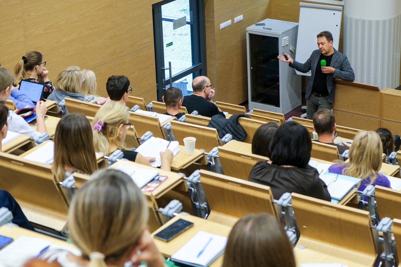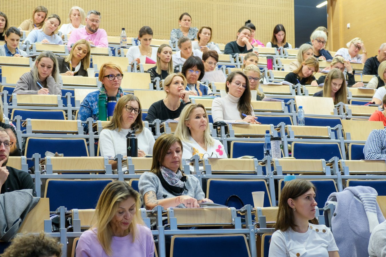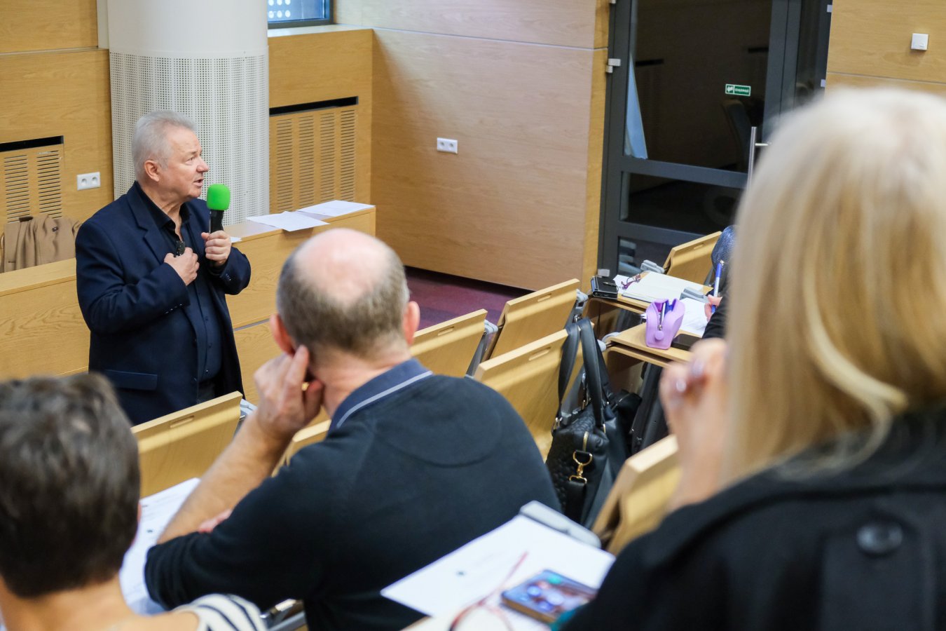 Prowadzący zajęcia prof. Napoleon Waszkiewicz - Kierownik Kliniki Psychiatrii UMB: Ja w swoim wykładzie skupiam się troszkę na profilaktyce. Na wyłapywaniu takich z pozoru zwykłych, codziennych objawów. Chodzi o to, żeby nauczyciel wiedział, kiedy podejść do ucznia, zapytać go, co się u niego dzieje. Wiedział co zrobić, żeby nie eskalować tego napięcia, które jest w nim w środku. Problemy natury psychicznej zwykle zaczynają się od tego, że troszkę mniej śpimy, mamy w sobie jakiś niepokój, gubimy koncentrację. W pewnym momencie zaczyna to się wszystko nawarstwiać, nakręcać. Potem pojawia się efekt kuli śnieżnej. Dochodzą kolejne objawy, stres. U niektórych pojawią się jakieś tendencje do zaburzeń lękowych. A jeżeli uda się wcześnie zareagować, to można pomóc.