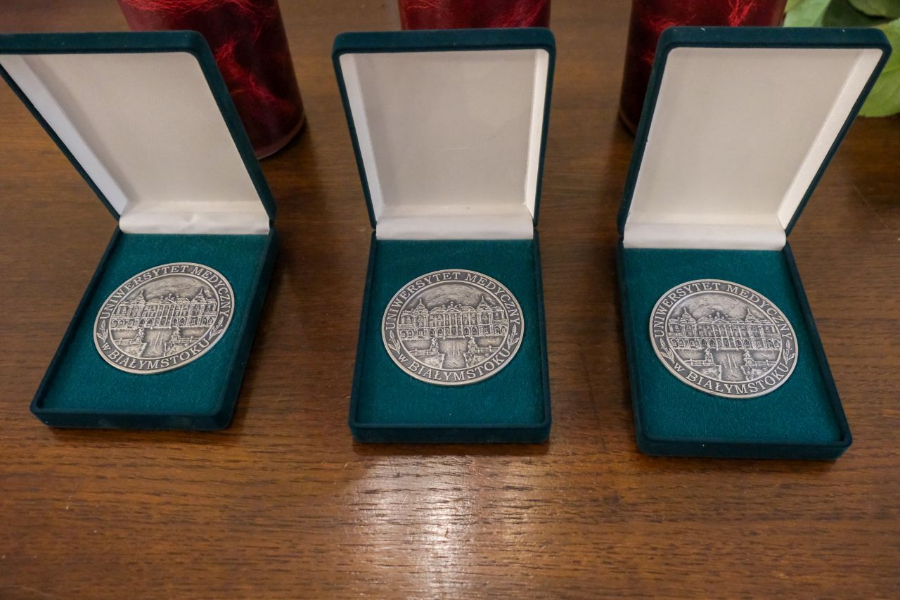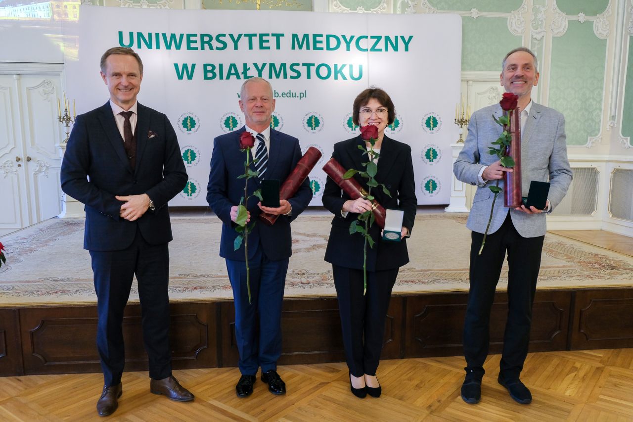 Na wniosek Dziekana Wydziału Lekarskiego, prof. Tomasza Hryszki, Senat UMB nadał Medal za zasługi dla Uniwersytetu Medycznego w Białymstoku prof. Irinie Kowalskiej, prof. Włodzimierzowi Łuczyńskiemu oraz prof. Maciejowi Jóźwikowi.