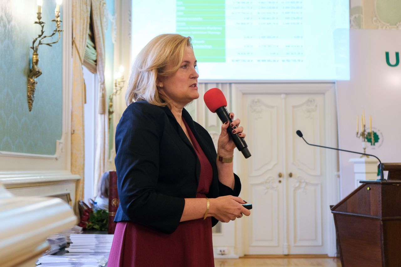 Prof. Irina Kowalska, przedstawiła syntetyczne podsumowanie osiągnięć badawczych UMB. Zwróciła uwagę, że pracownicy uczelni publikują coraz więcej prac w wysoko punktowanych czasopismach, a liczba publikacji rośnie z roku na rok. Już na początku grudnia tego roku Uniwersytet Medyczny w Białymstoku przekroczył liczbę 720 publikacji z IF (liczba prac z IF powyżej 10. na dzień dzisiejszy przekroczyła 40).