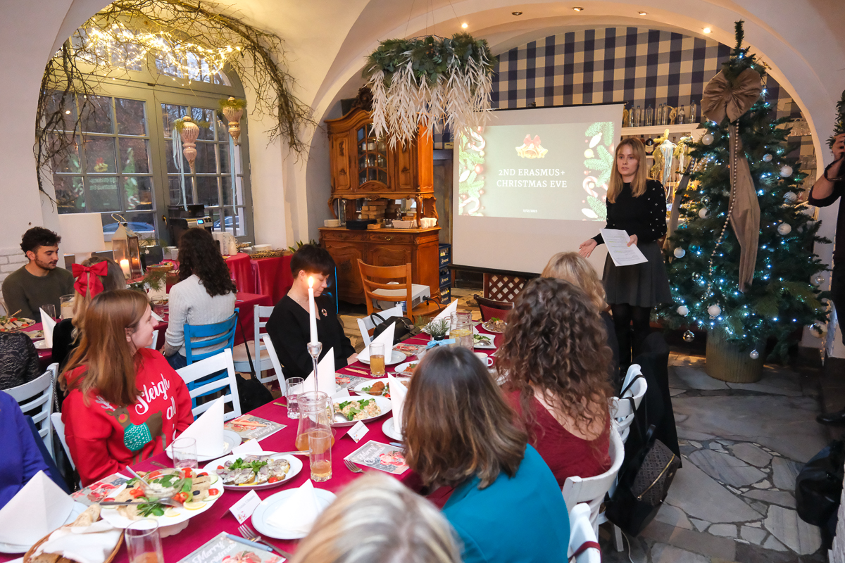 „2nd Erasmus+ Christmas Eve” było okazją, by podzielić się z naszymi gośćmi tym, co w polskich świętach najważniejsze – tradycyjną, świąteczną, polską kuchnią i atmosferą bycia razem. Uczestnicy spróbowali klasycznych wigilijnych potraw: barszczu z uszkami, pierogów, ryby i świątecznych słodkości, które dla wielu były pierwszym kontaktem z kulinarną tradycją świąteczną, kultywowaną w Polsce.