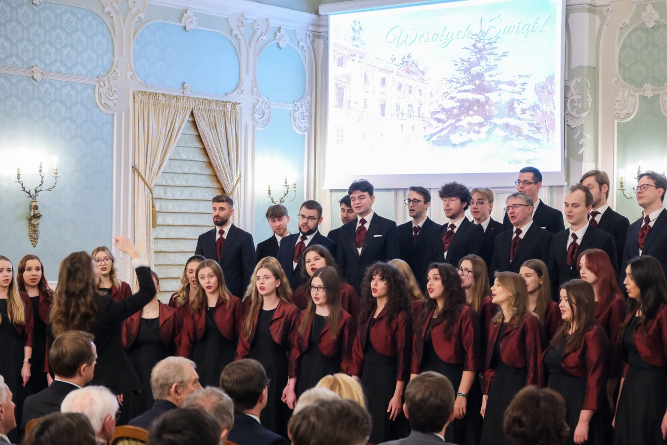 Spotkanie pełne serdecznych życzeń uświetnił koncert kolęd w wykonaniu Chóru Uniwersytetu Medycznego w Białymstoku. Chórzyści z pasją prowadzeni przez prof. Annę Moniuszko w finale swojego występu zaśpiewali kolędę Franciszka Karpińskiego "Bóg się rodzi". Kolęda powstała w Pałacu Branickich (ponoć w prawym skrzydle, gdzie mieszkał Karpiński), a swoją premierę miała w starym Kościele Farnym w 1792 roku.