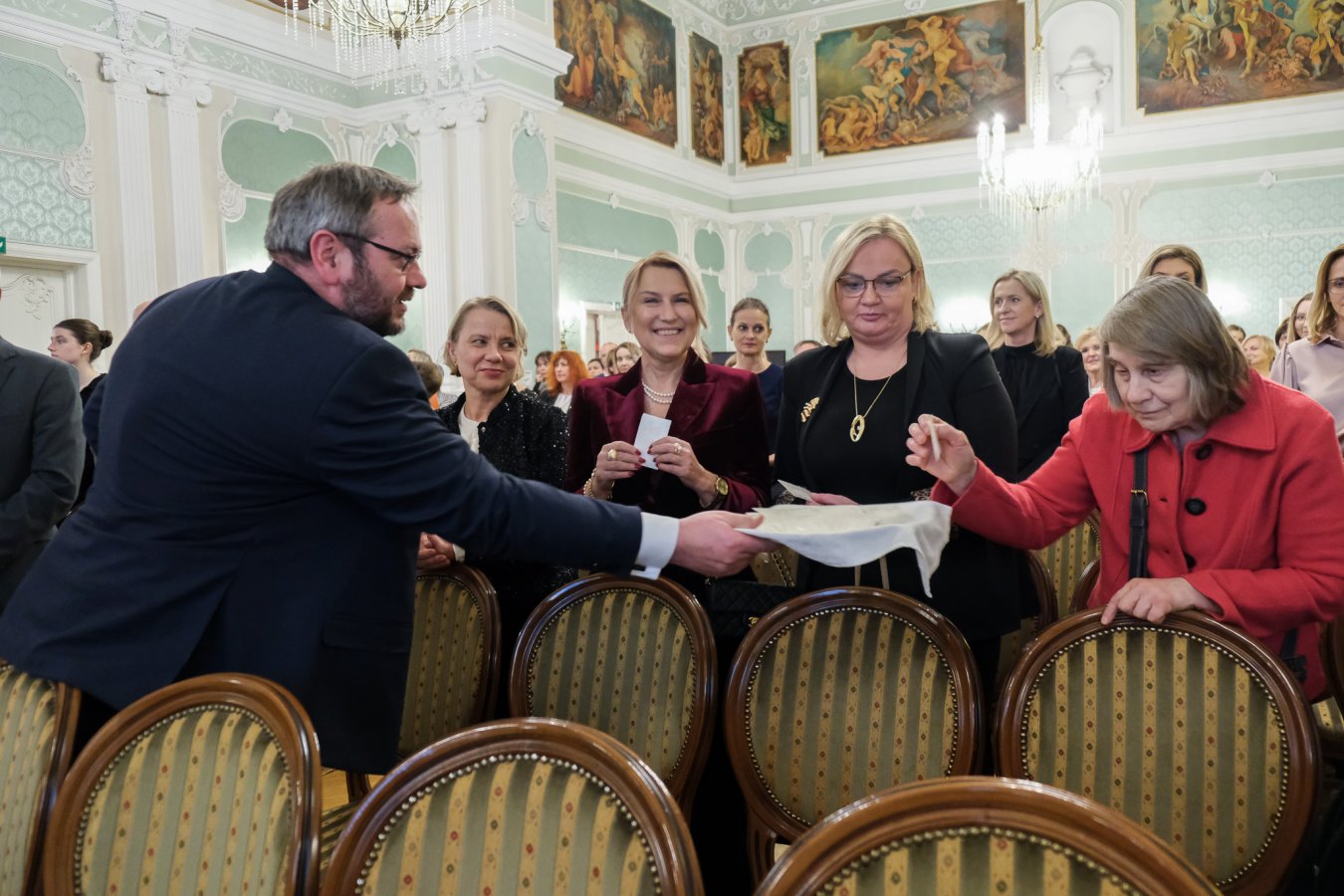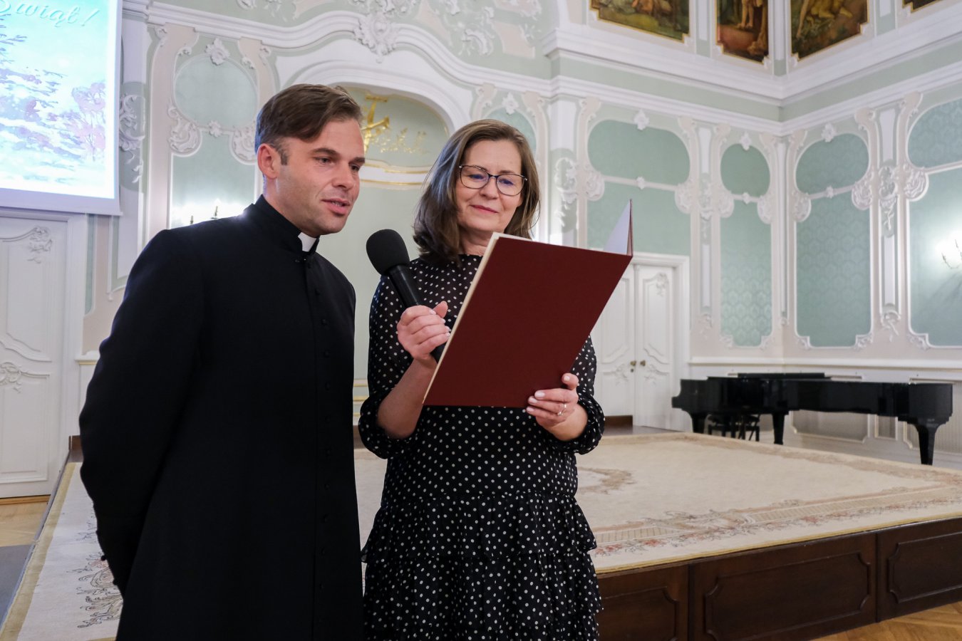 Tuż przed świętami Bożego Narodzenia we wtorkowy wieczór (16 grudnia 2025r.), w klimatycznej Auli Magna Pałacu Branickich, zebrała się społeczność naszej Uczelni oraz szpitali klinicznych. Obecni byli studenci, doktoranci, pracownicy administracyjni, nasi emerytowani pracownicy, ale też władze rektorskie i dziekańskie. Wszystko po to, by łamiąc się opłatkiem, złożyć sobie najpiękniejsze życzenia – z okazji najpiękniejszych świąt w roku i nadchodzącego nowego roku.