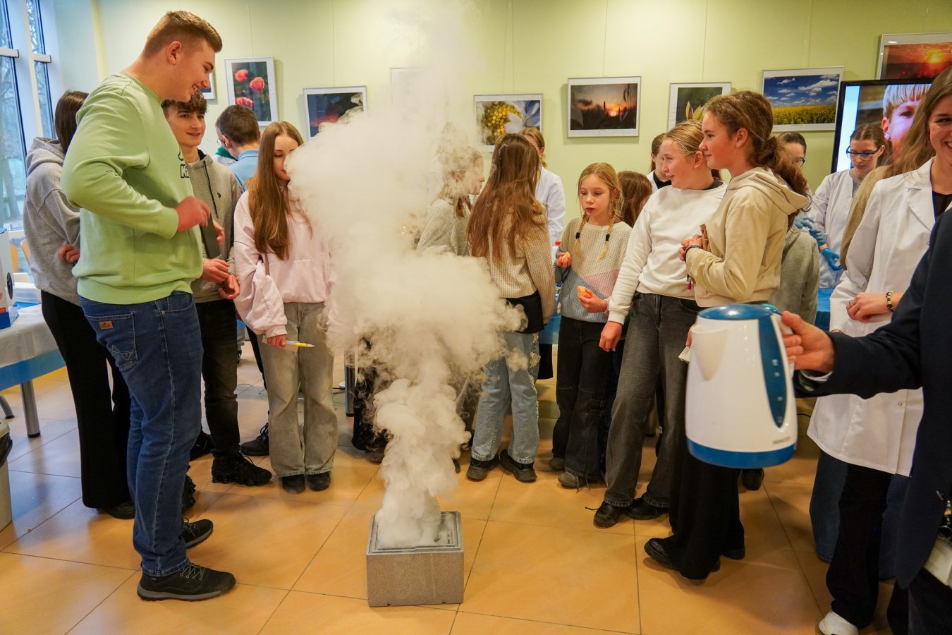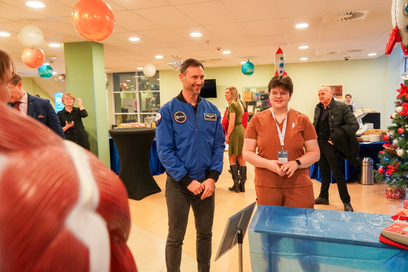 Po południu z astronautą spotkać się mogli w Euroregionalnym Centrum Farmacjii UMB uczniowie i nauczyciele. Tam też swoje interaktywne prezentacje przygotowali edukatorzy i popularyzatorzy nauki z zespołu „Heweliusze Nauki”.