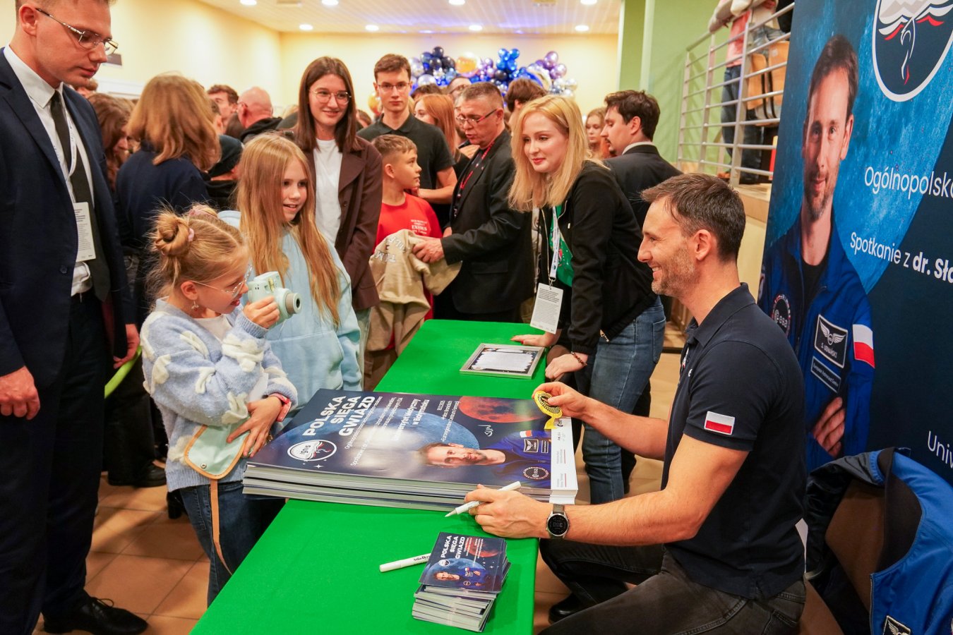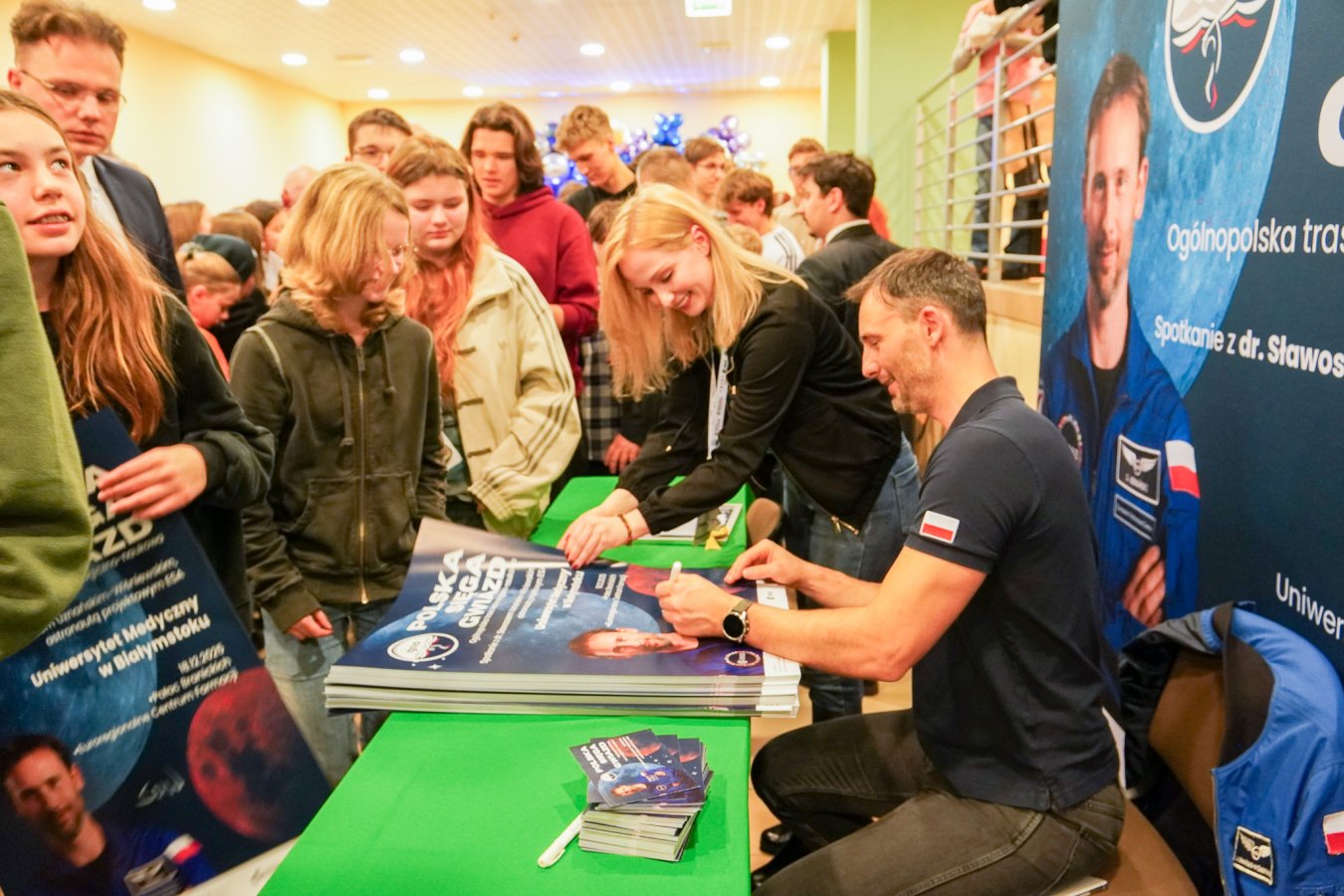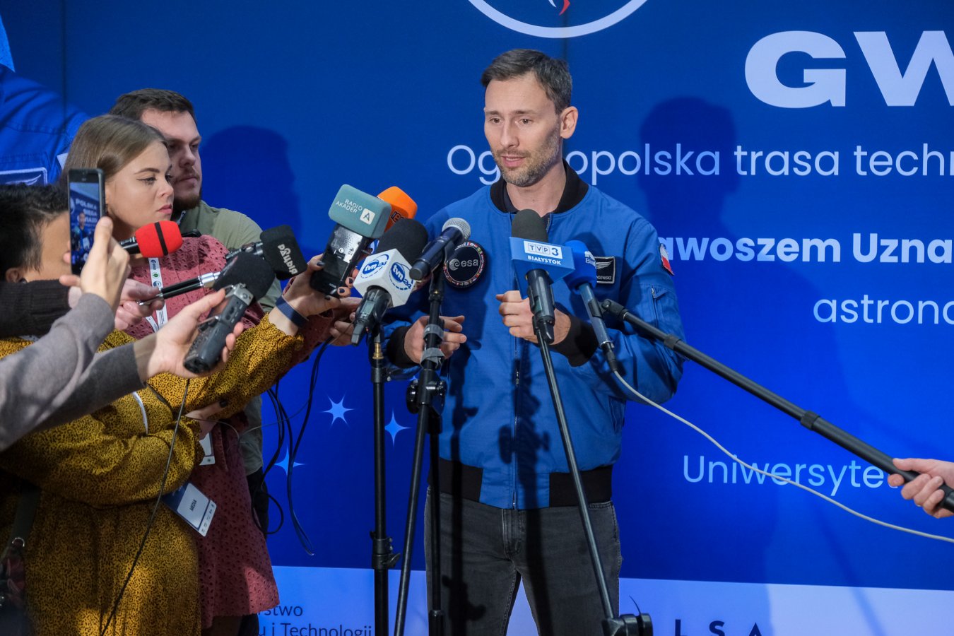 Witając astronautę Rektor UMB prof. Marcin Moniuszko mówił, że to wydarzenie jest wielkim świętem nauki, przede wszystkim studentów i doktorantów podlaskich uczelni oraz uczniów podlaskich szkół. Duża grupa ludzi chce czerpać inspirację z tego, co się wydarzyło. Był Pan i jest Pan ogromną inspiracją dla nas wszystkich do tego, by swoimi marzeniami nie bać się sięgać gwiazd.