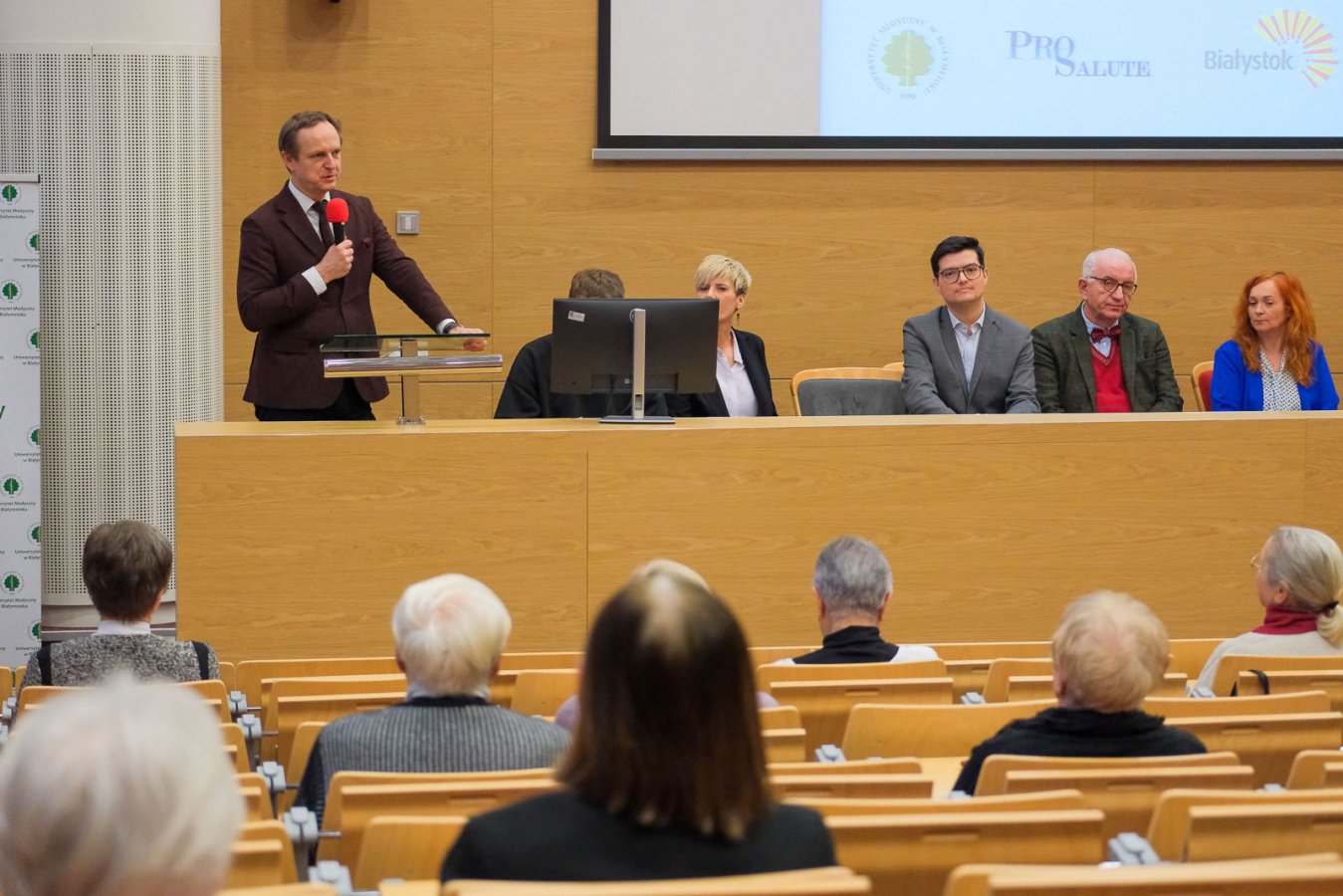 Tego dnia dzieje się historia – mówił z kolei Rektor UMB, prof. Marcin Moniuszko. Podkreślał, że Senioralna Szkoła Zdrowia to święto nie tylko Wydziału Nauk o Zdrowiu, ale całej Uczelni, która konsekwentnie stawia na wychodzenie do ludzi i profilaktykę - zanim pojawi się choroba.